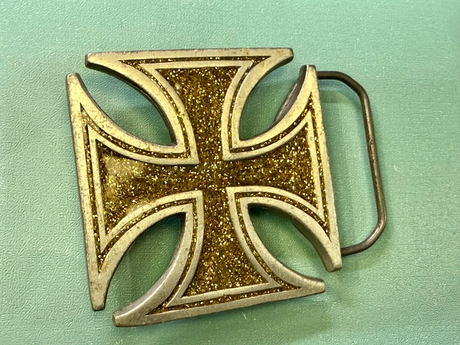 Celtic Crusader Knights Yellow Glittery Cross Pewter Great American Belt Buckle