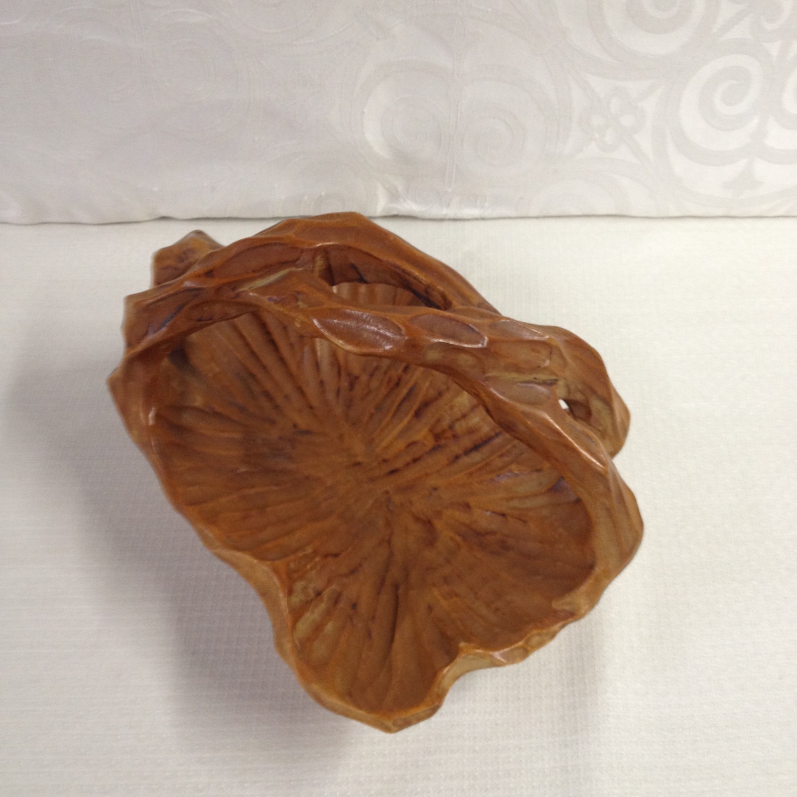 как выглядит Vintage Hand-Carved Wooden Decorative Bowl With Natural Grain Texture Handle фото