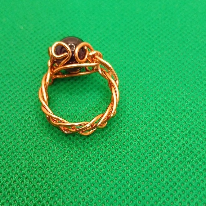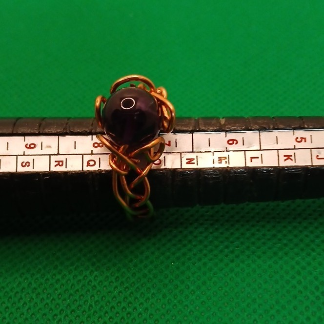 как выглядит Handcrafted Purple Glass Bead Ring Wire Wrapped Copper Size 8 фото