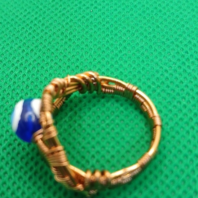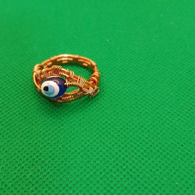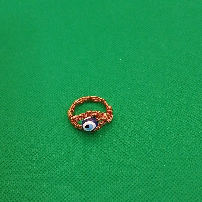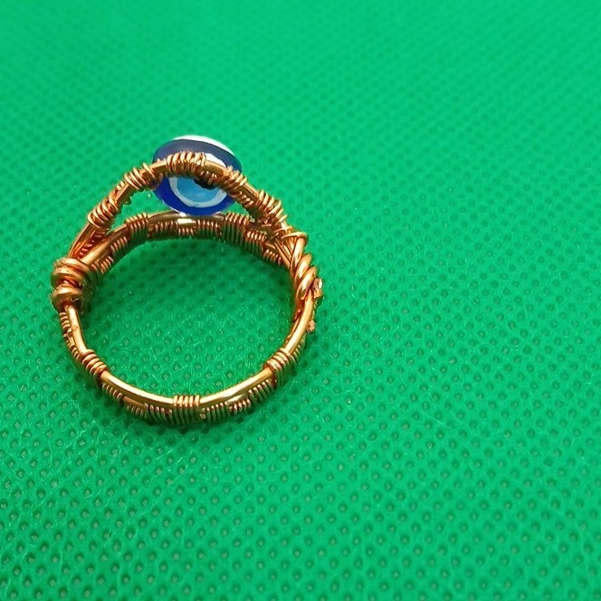 как выглядит Handcrafted Blue Evil Eye Glass Bead Ring Wire Wrapped Copper Size 8 фото