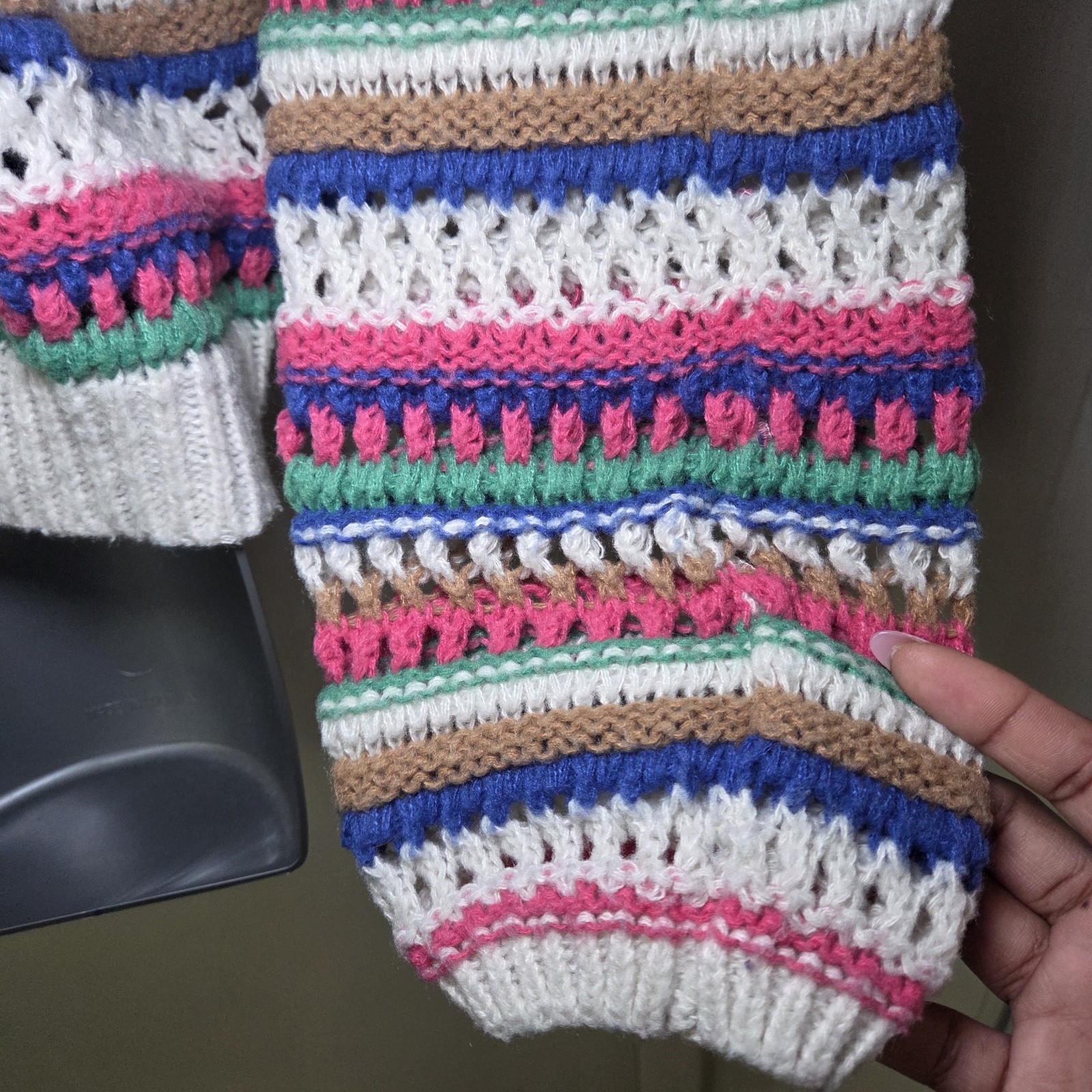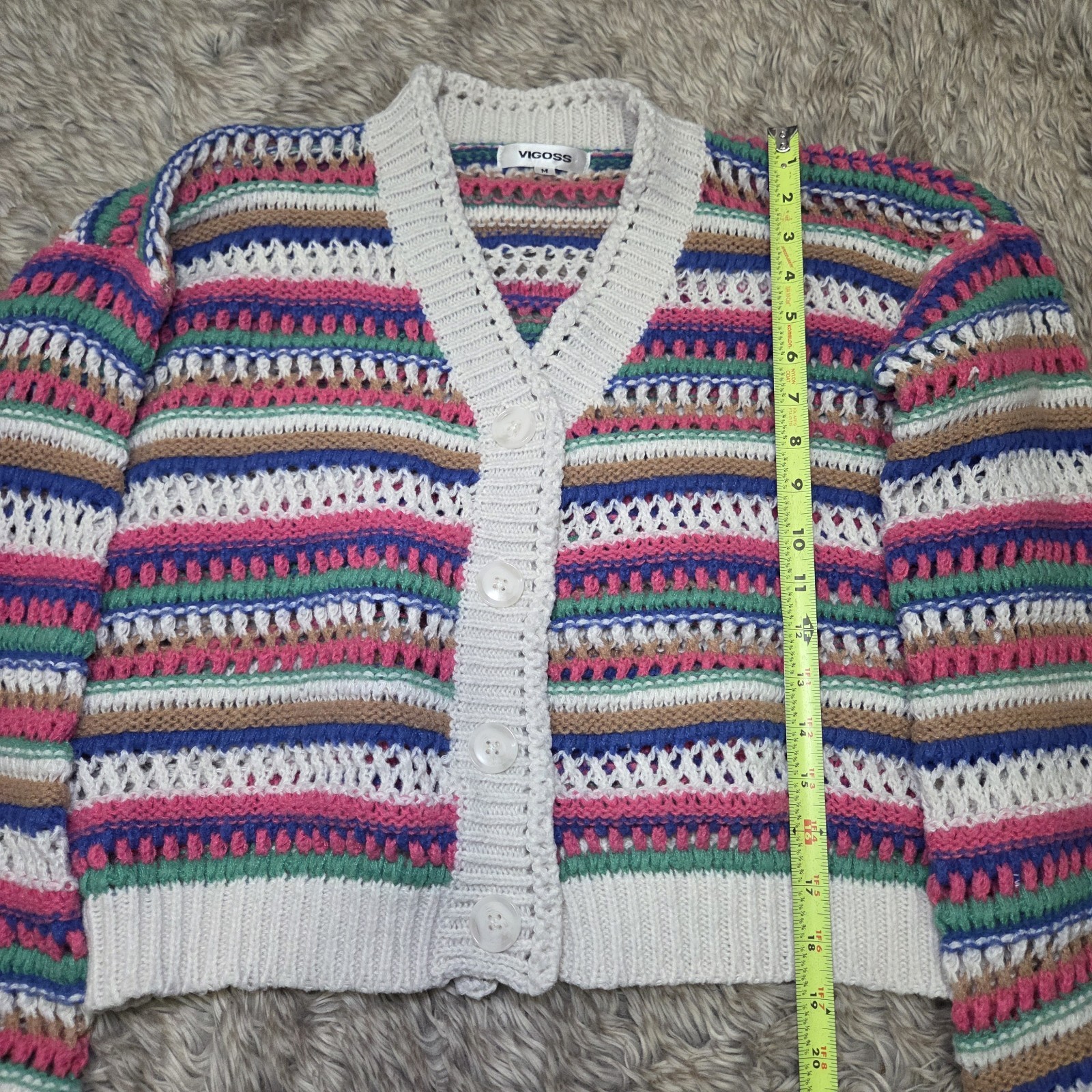 как выглядит VIGOSS Womens Crochet Knit Cardigan Multicolor Stripe Cropped Boho Beach Sweater фото