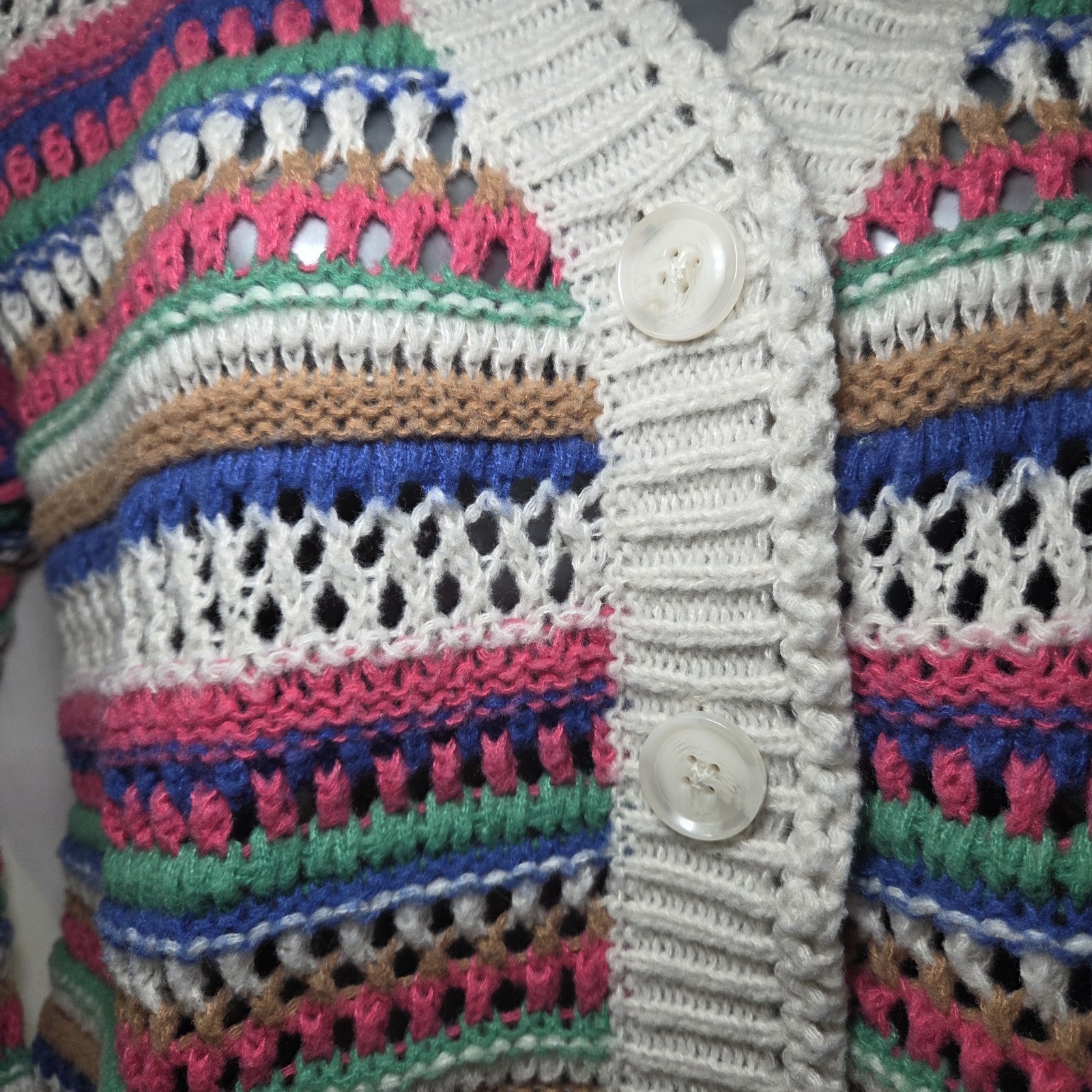 VIGOSS Womens Crochet Knit Cardigan Multicolor Stripe Cropped Boho Beach Sweater