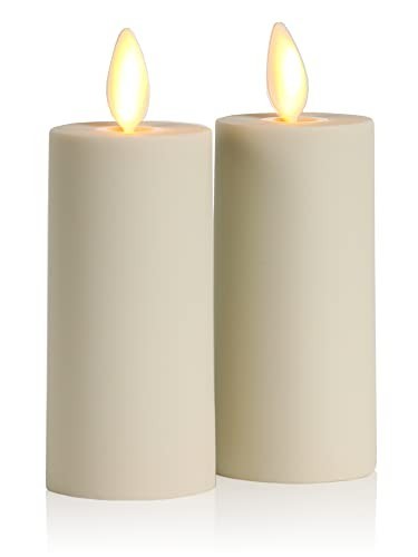 Set of 2 Flameless LED Votive Candles - Ivory 1.5 x 4, Moving Flame, Timer, Wa