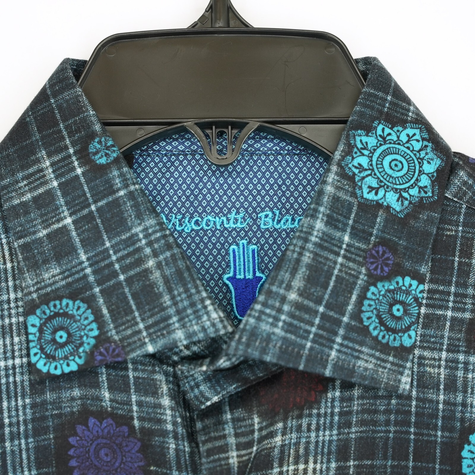 как выглядит Visconti Black Mens Long Sleeve Shirt M Blue Black Purple Stretch Mask NWT 125 фото