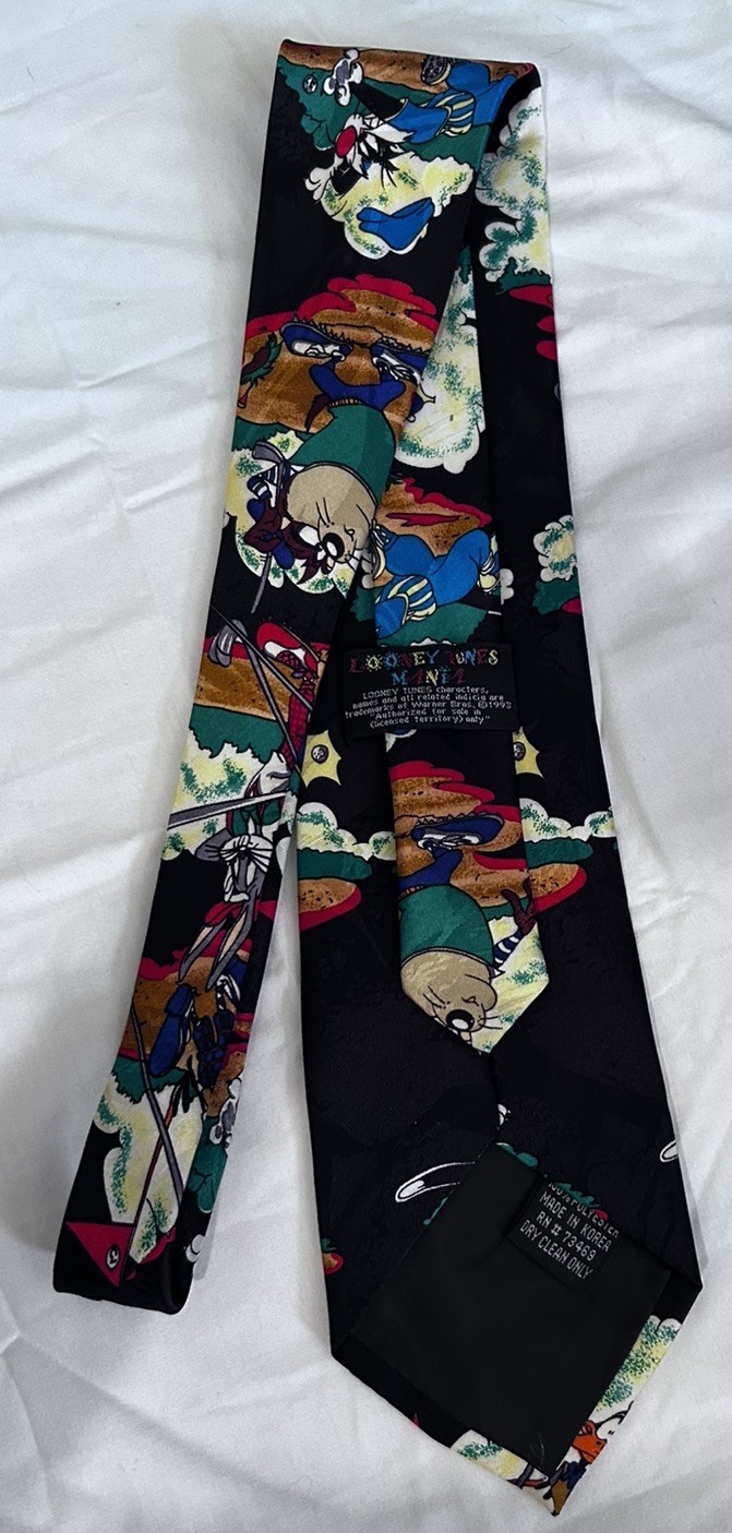 Vintage Looney Tunes Mania Bugs Bunny Taz Donald Duck Golfing Mens Tie