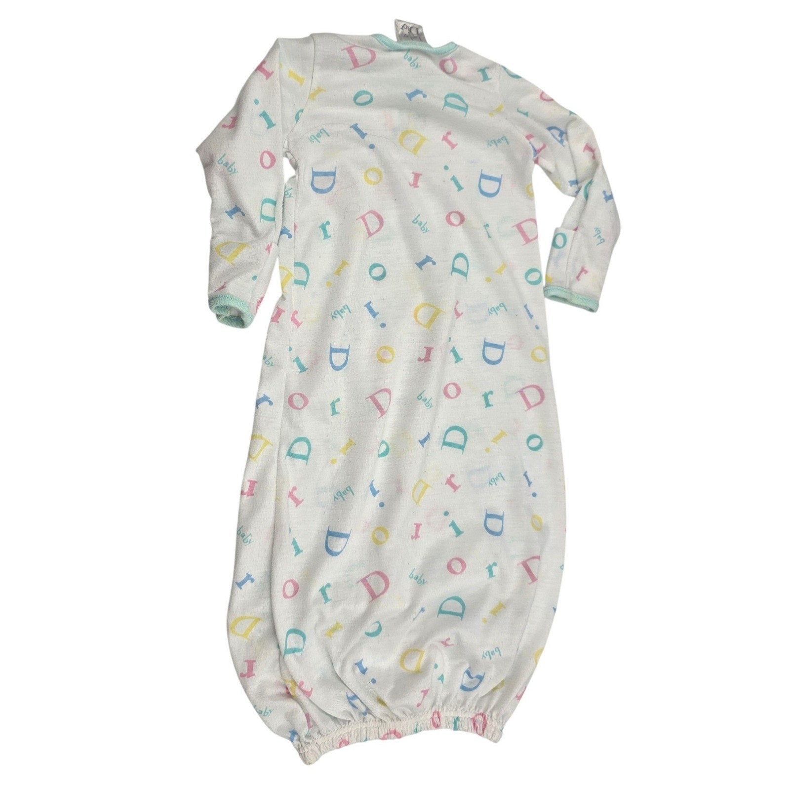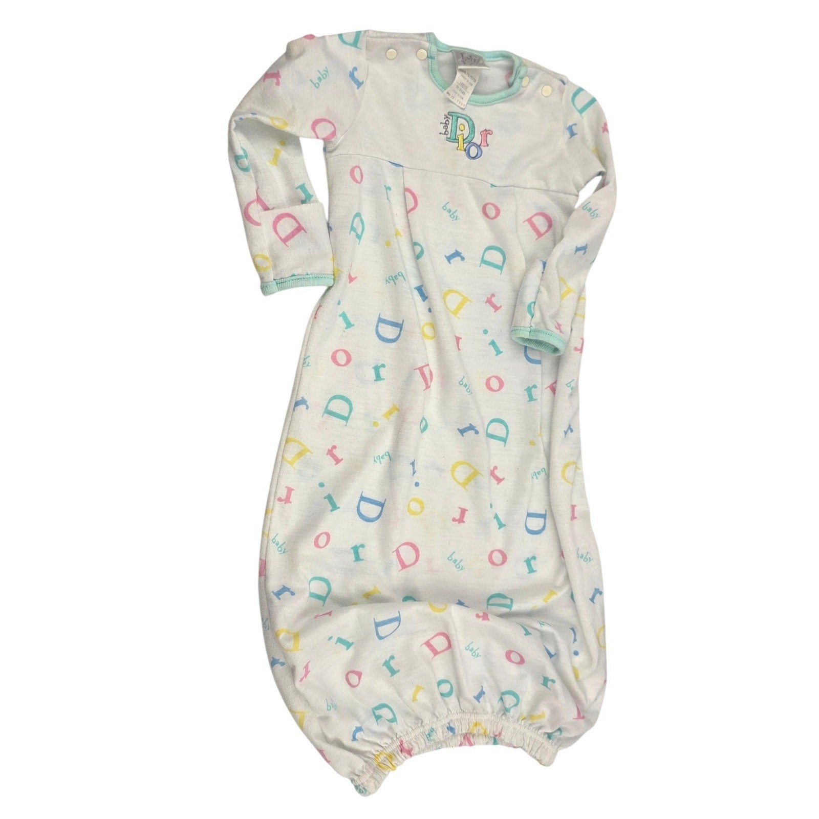 Vintage Baby Dior Spellout AOP Monogram Logo Letters Sack Sleep Gown Pajamas 0-3