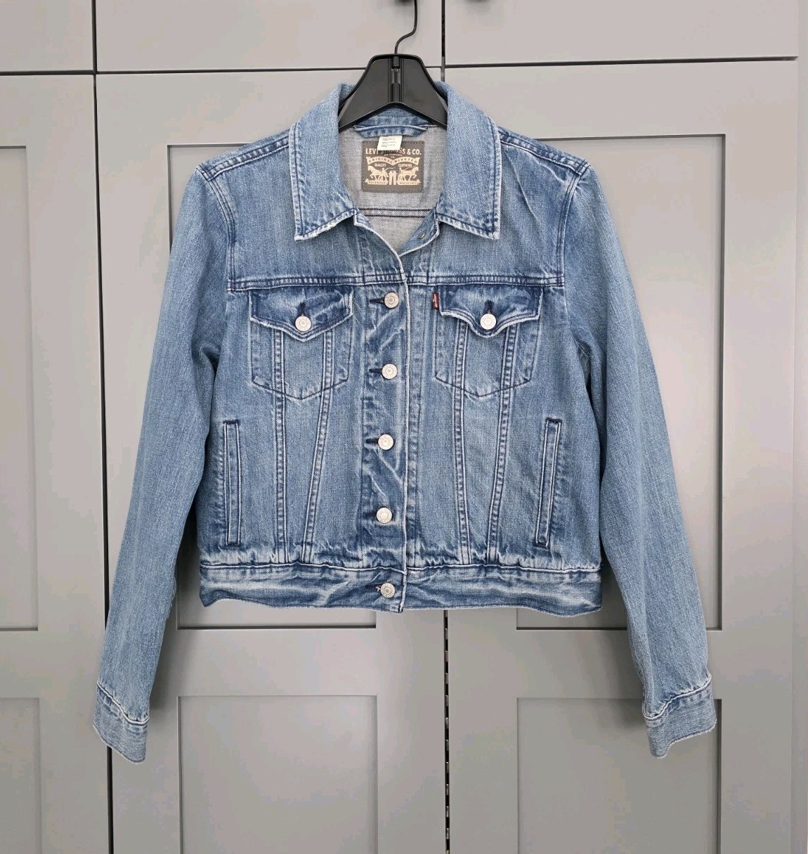 как выглядит Levis Denim Jacket Youth Size Large 12 Blue Trucker Country Classic Spring Fall фото