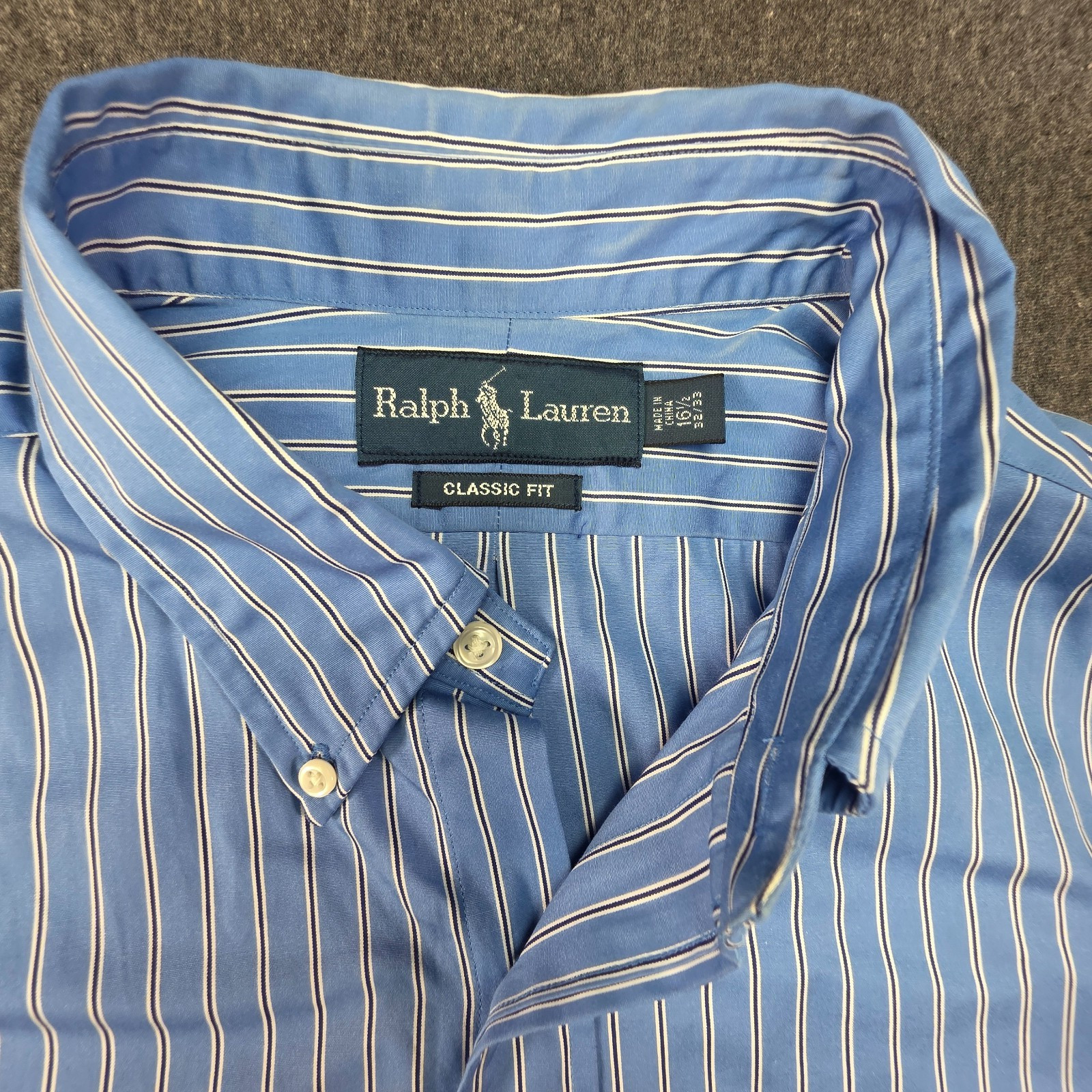 как выглядит Polo Ralph Lauren Shirt Mens 16.5 32/3 Blue Stripes Classic Fit Cotton Button Up фото