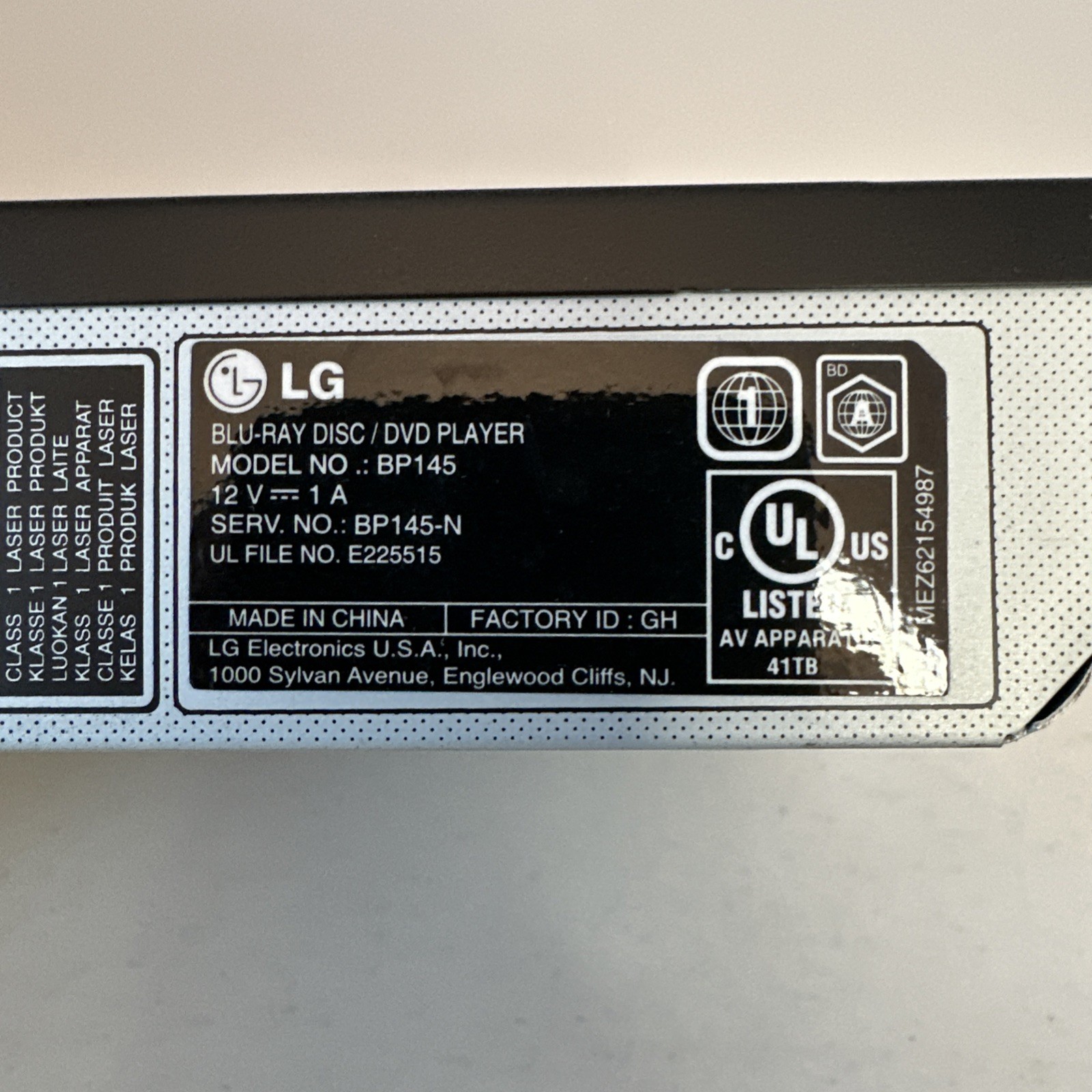 LG BP145 Blu-Ray Disc/DVD Player No Remote/with Power Cord - Tested
