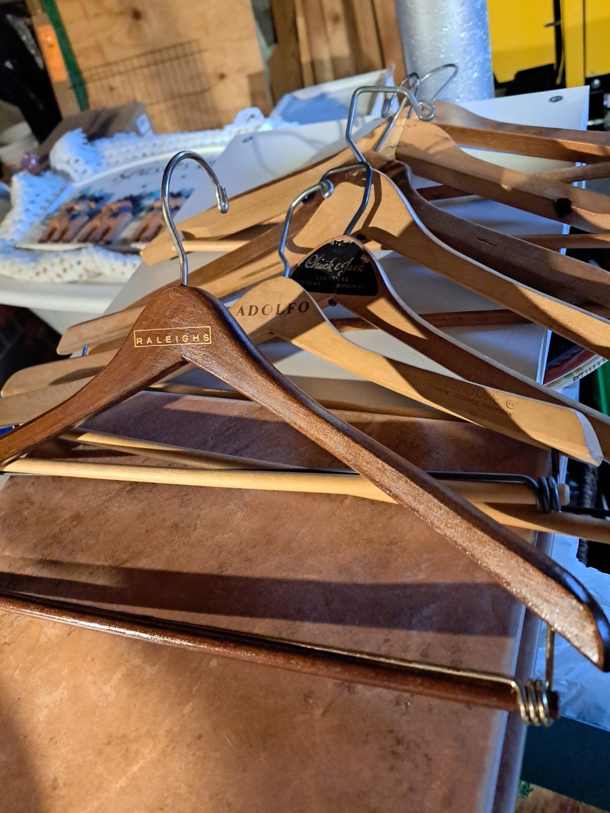 как выглядит Vintage Wooden Hangers Lot Of 7 фото