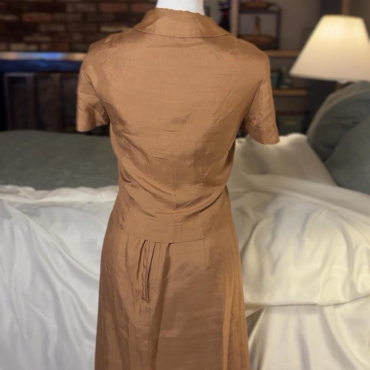 как выглядит Vintage Pure Silk Two Piece Skirt Button Up Top Set фото