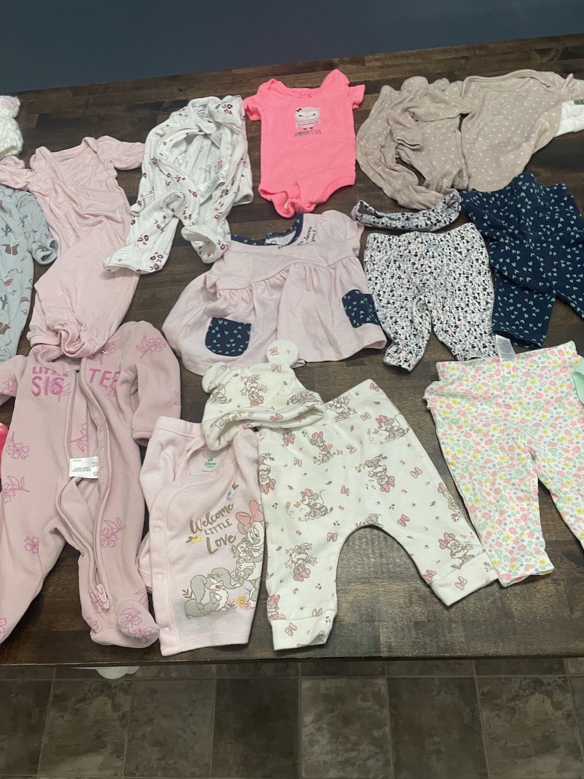как выглядит Lot of 20 Baby Girls Newborn To 3 Month Clothing Pants One Piece Tops фото