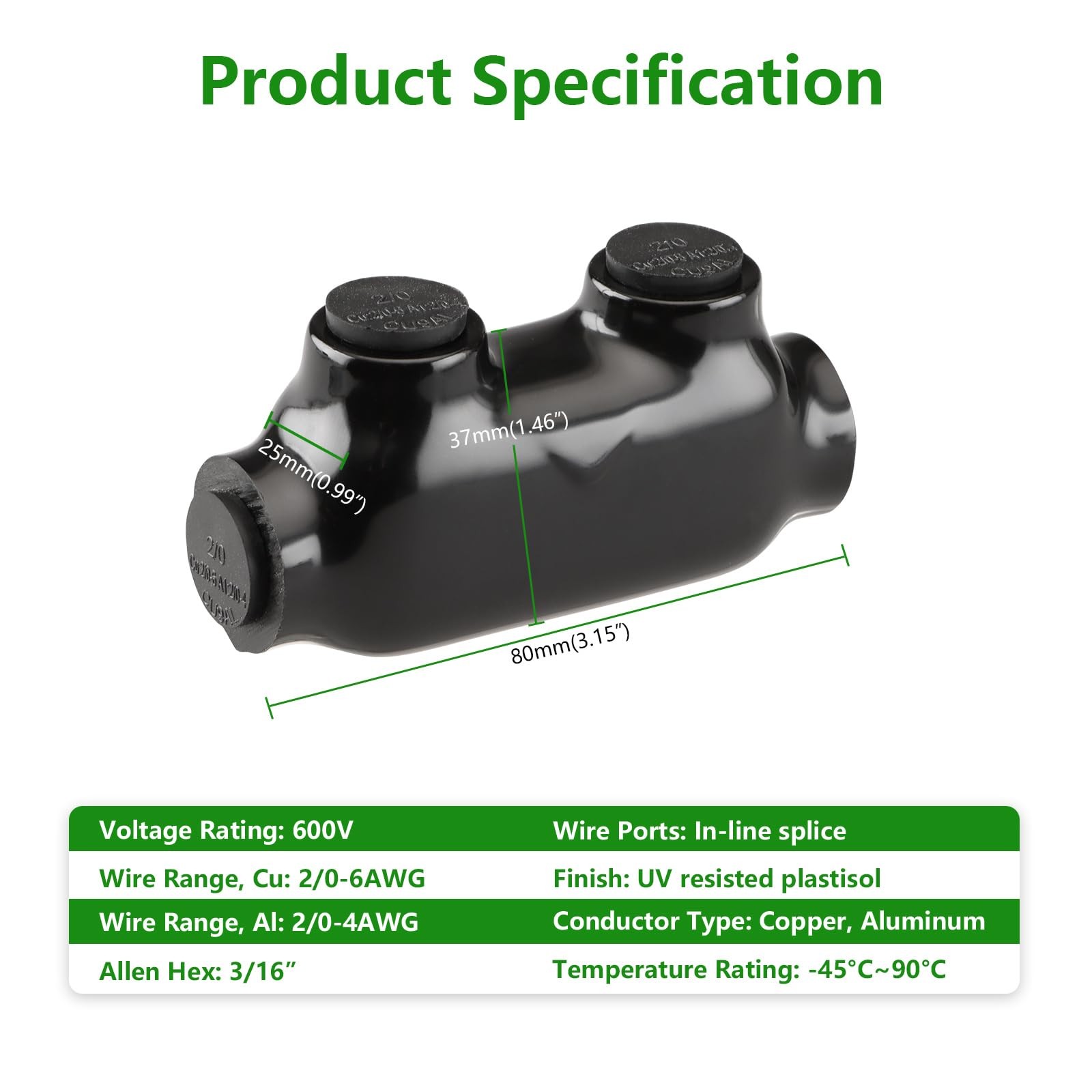 Insulated Inline Splice Connector for 2/0-6 Gauge Wire, 7/32 Slot Size