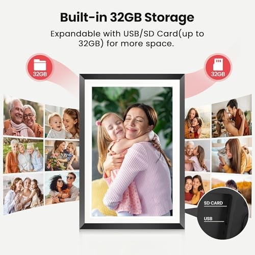 10.1 WiFi Digital Picture Frame - HD Touch Screen, 32GB Storage, Auto Rotate, W