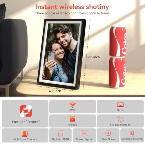10.1 WiFi Digital Photo Frame, HD Touch Screen, 32GB Memory, Auto-Rotate, Easy