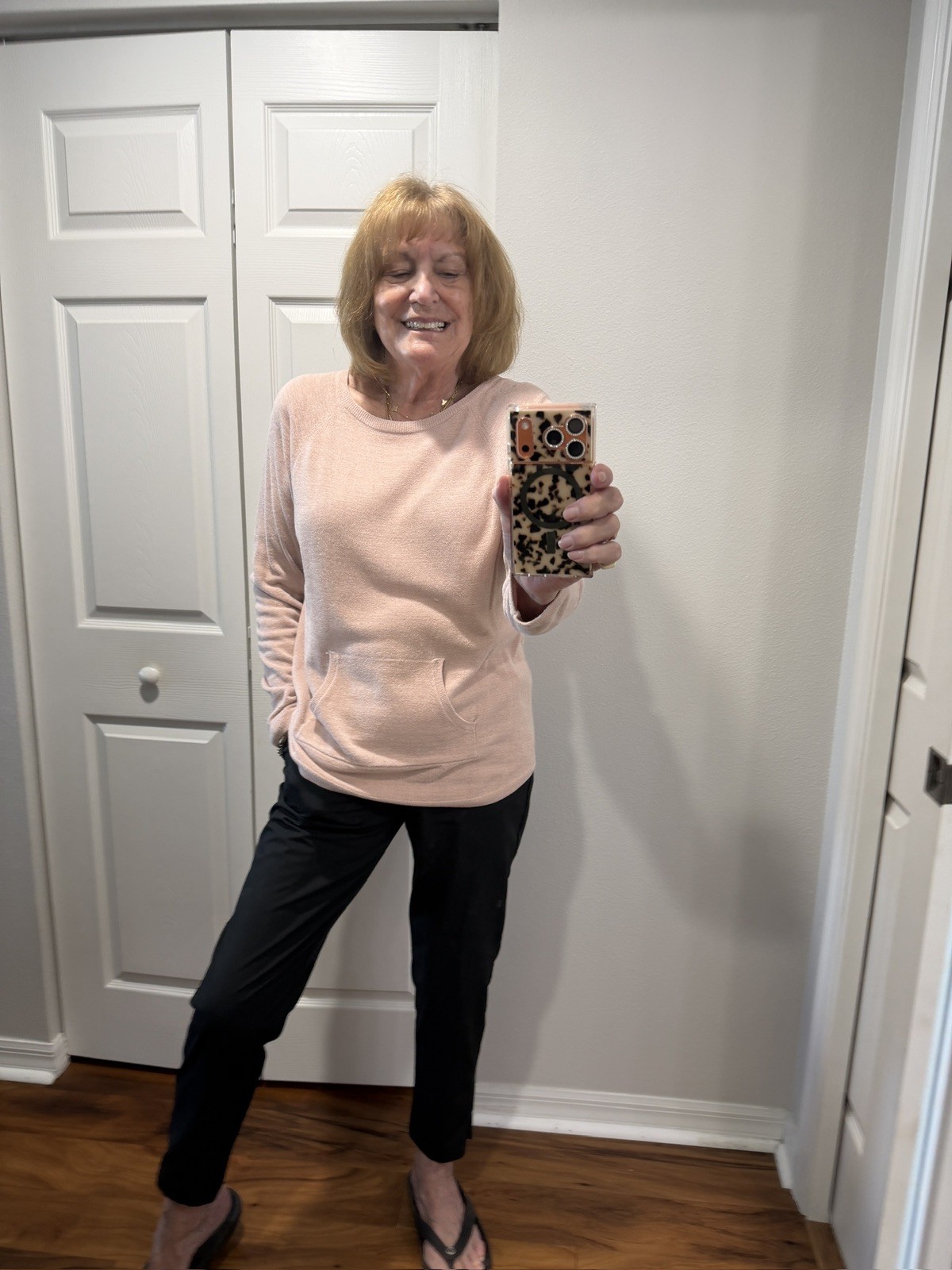 как выглядит Barefoot Dreams CozyChic Ultra Lite Pink Sweater Large Kangaroo pocket фото