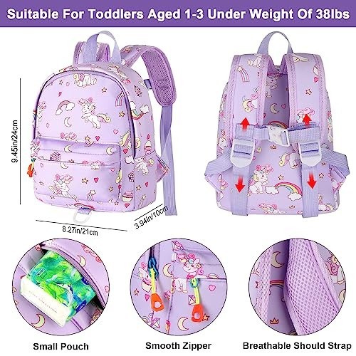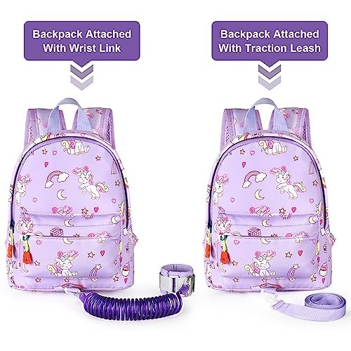 Toddler Backpack Leash with Anti-Lost Wrist Link, Cute Mini Child Harness, Purpl