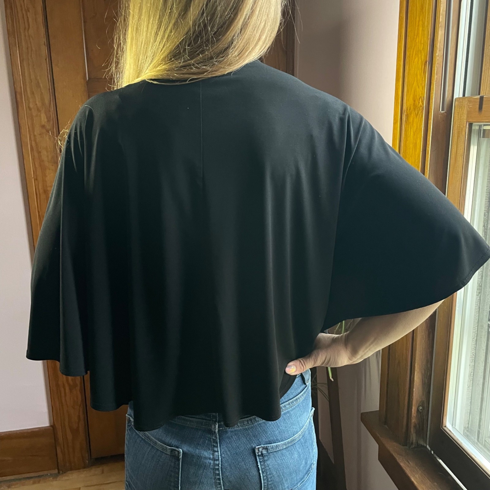 как выглядит Vintage Dolman Sleeve Black Batwing Cardigan Women L Witchy Goth Vamp Fairy фото