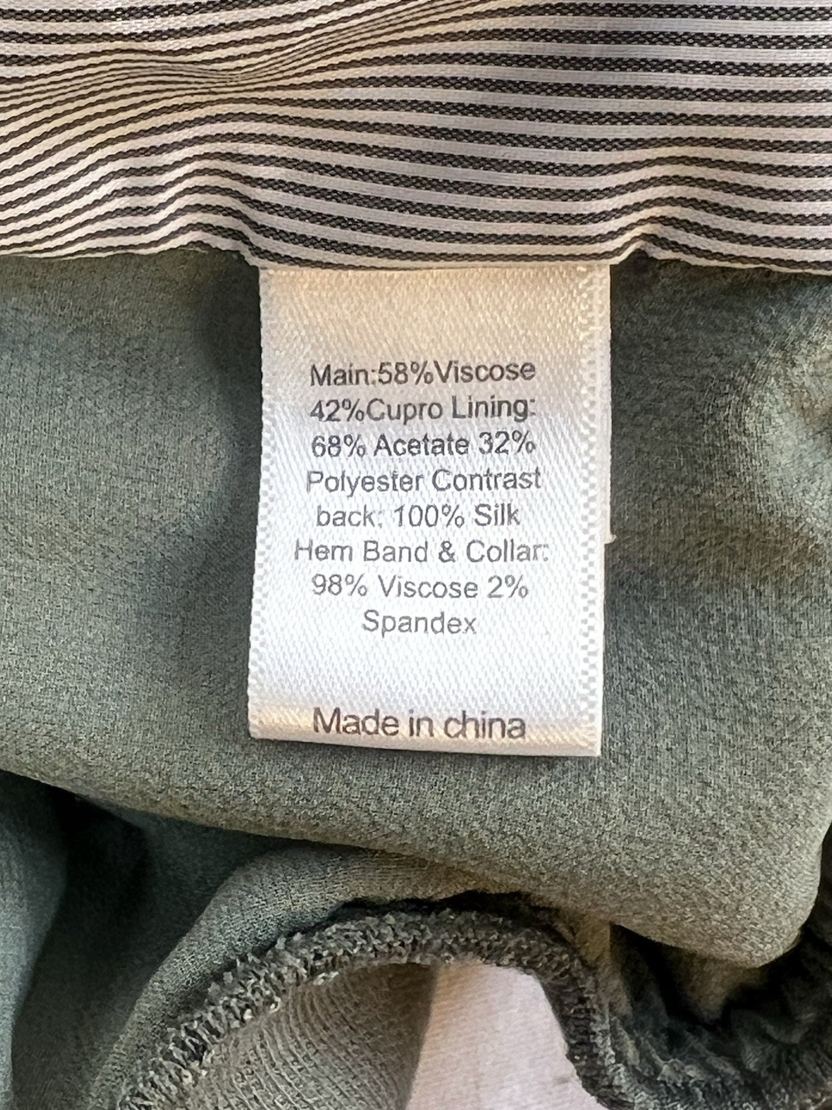 как выглядит vtg ST JOHN Black Lable Silk Bomber Jacket Green Beaded With Ruffle in Back sz M фото