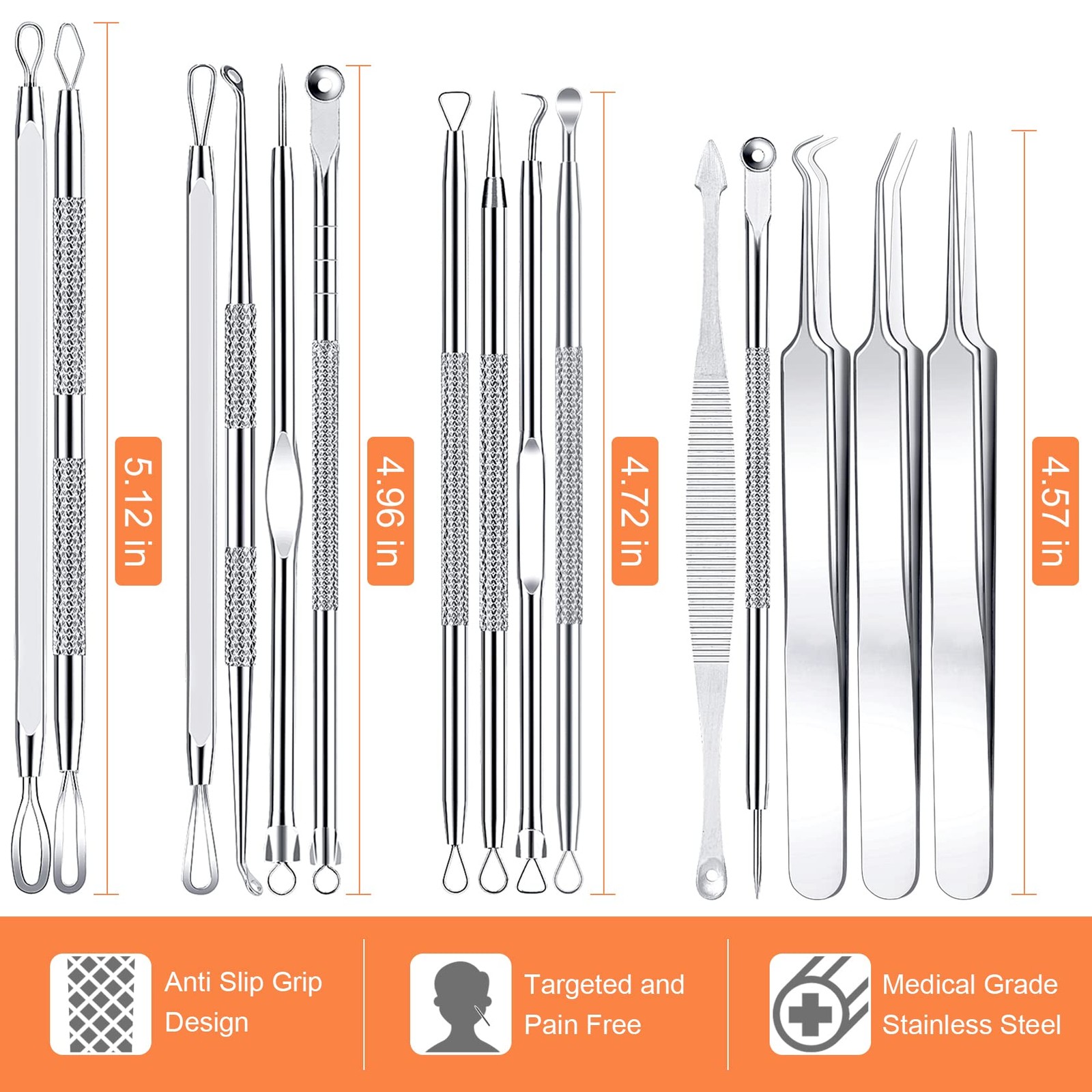 Professional Pimple Popper Tool Kit - 15 PCS Stainless Steel Blackhead Remover
