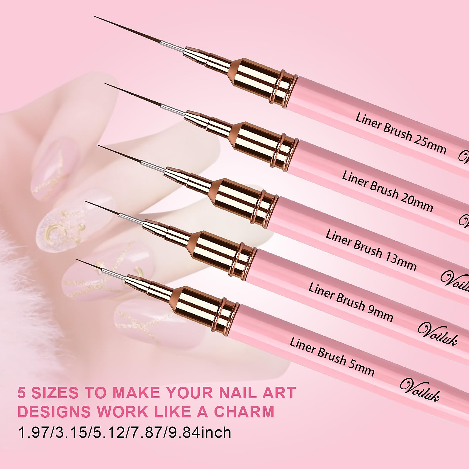5Pcs Nail Art Liner Brushes, Liner Brush For Nails Gel