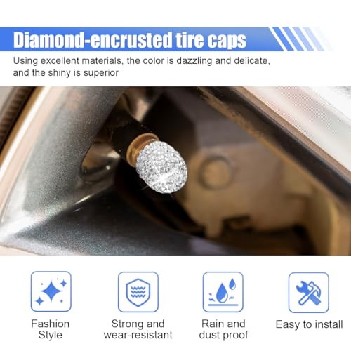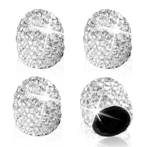 4PCS Crystal Rhinestone Tire Valve Caps, Dustproof Tire Valve Stem Caps, White