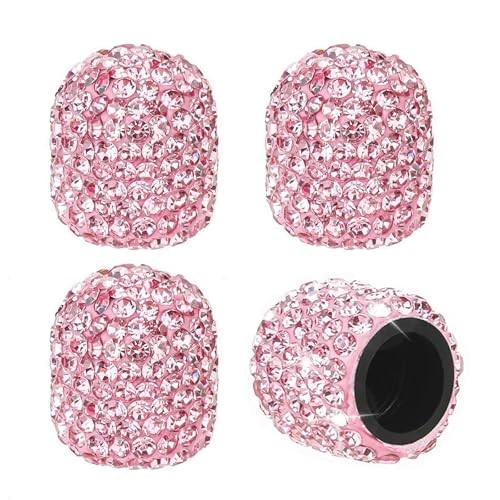 Car Tire Valve Stem Caps Sparkling Crystal Tire Caps 4Pcs-Universal Car Pink