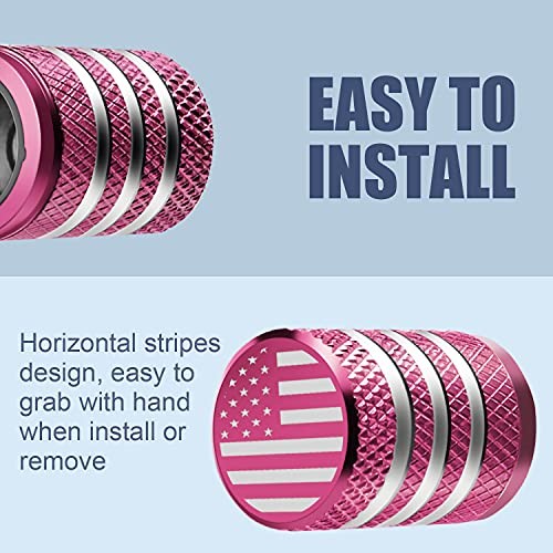 Tire Valve Stem Cap Cover - 5 Pack Tire Air Cap Metal with American Flag Pink