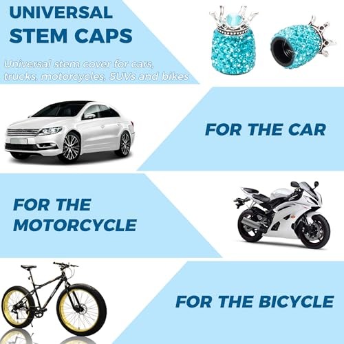 Valve Stem Caps, 4 Pack Handmade Crown Bling Crystal Rhinestone Car Wheel Blue