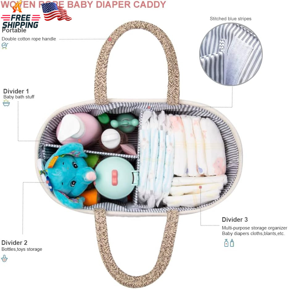 Baby Diaper Caddy Organizer, Portable Nursery Storage Basket with Changeable Com