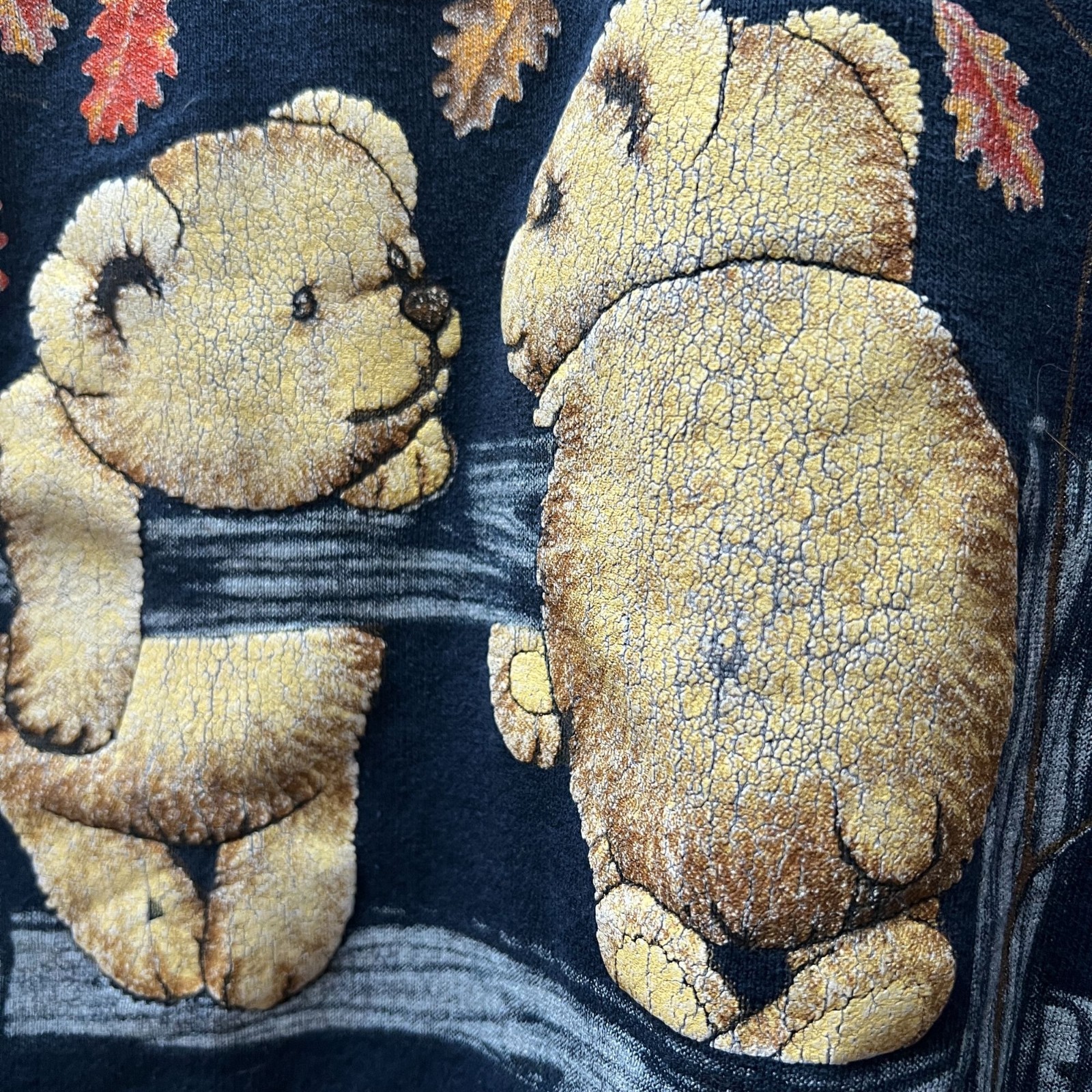 Vintage 90s Sweatshirt Cabincore Cottagecore Bear Fall Leaf Cute Novelty Navy M