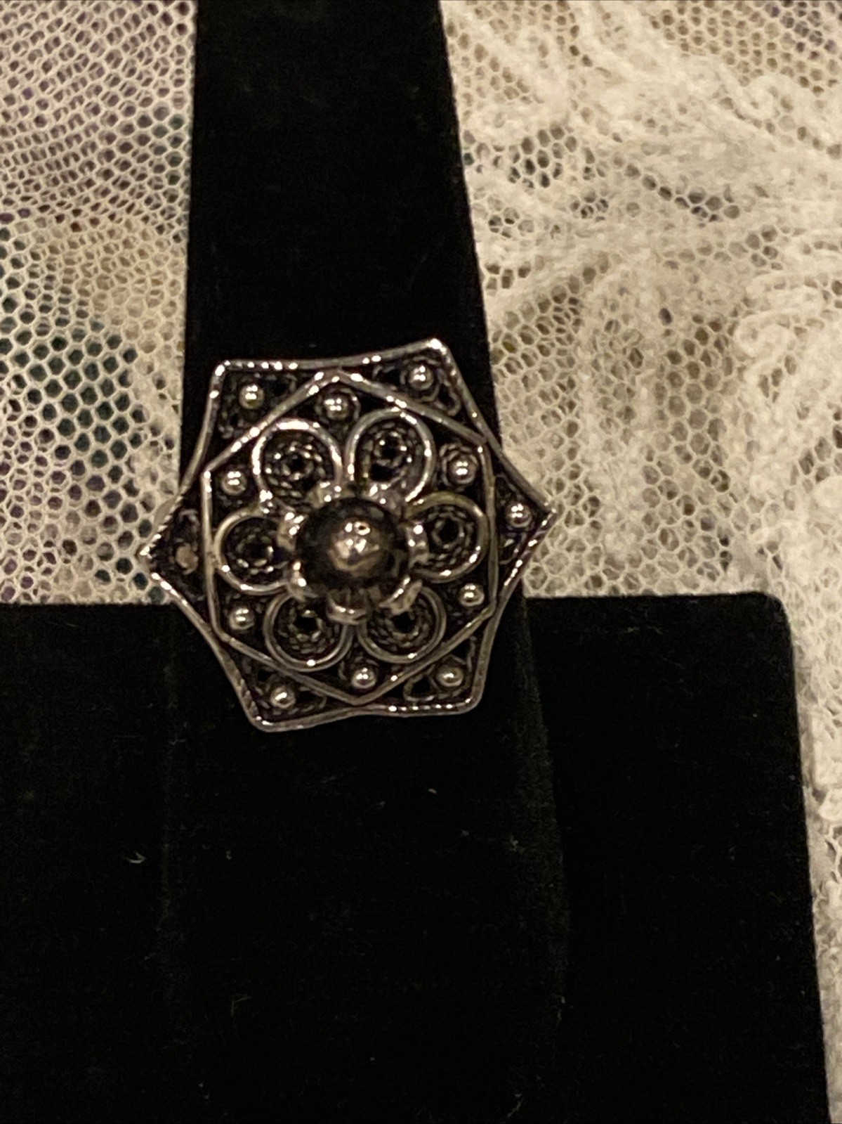 как выглядит Vintage Sterling Silver Flower Filigree Ring Size 8 Unmarked фото