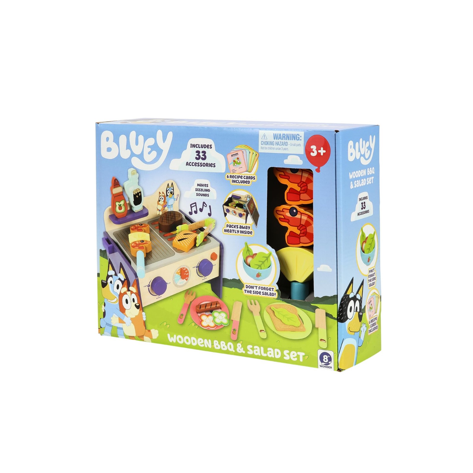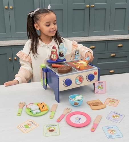 Bluey 8th Wonder Wooden Salad BBQ Grill Toy Set, 33-Piece Play Food