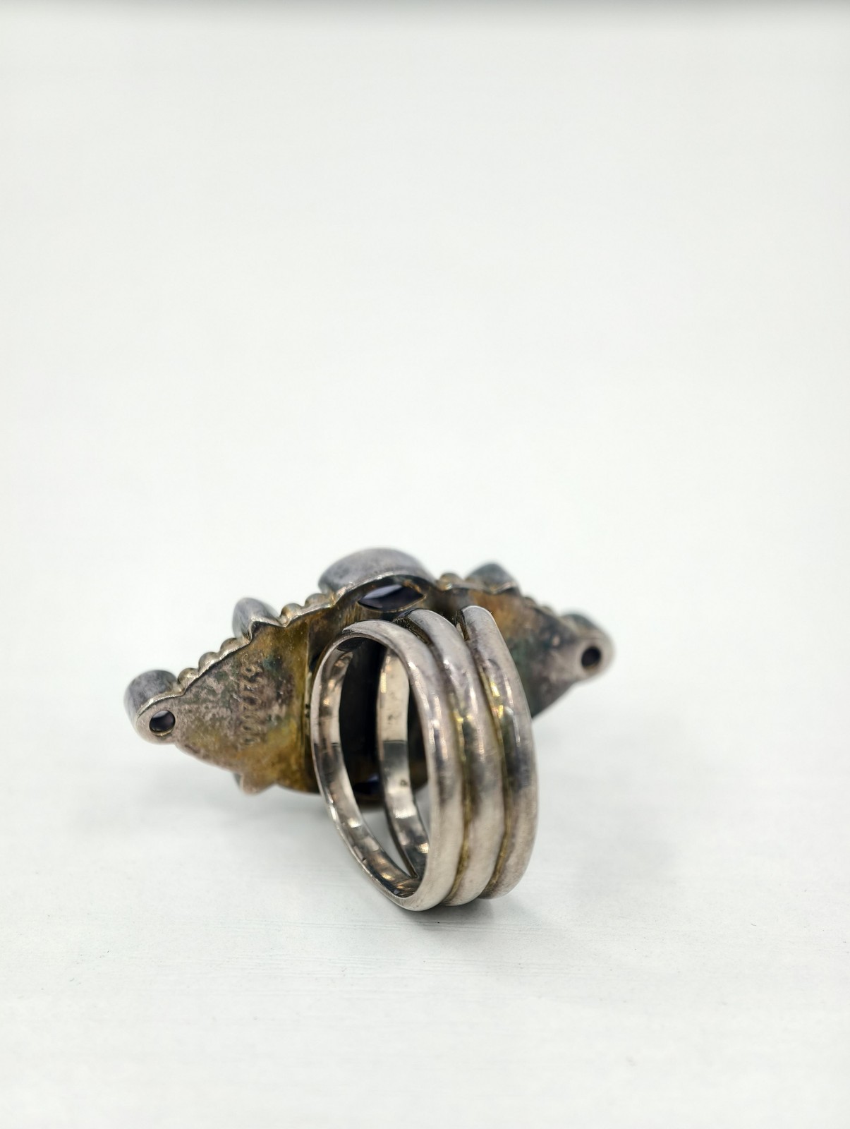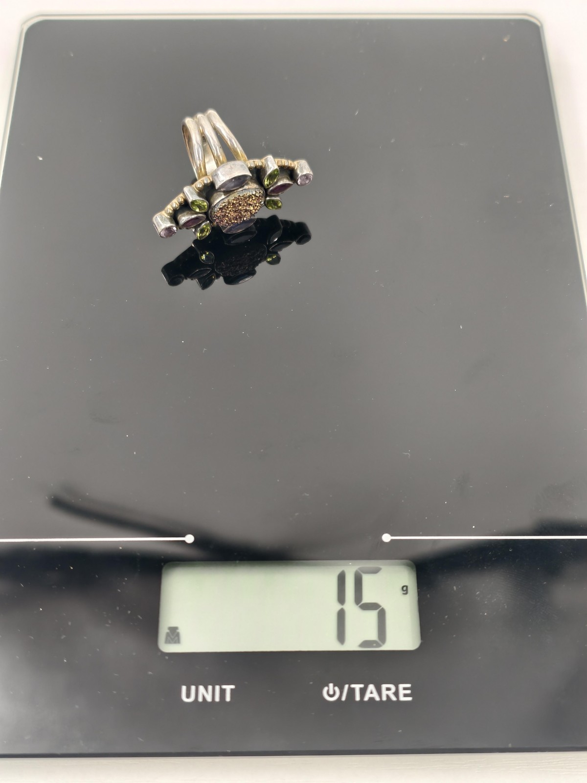 как выглядит Sterling Silver 925 Multicolor Druzy Gemstone Cocktail Ring Size 8 15g Statement фото