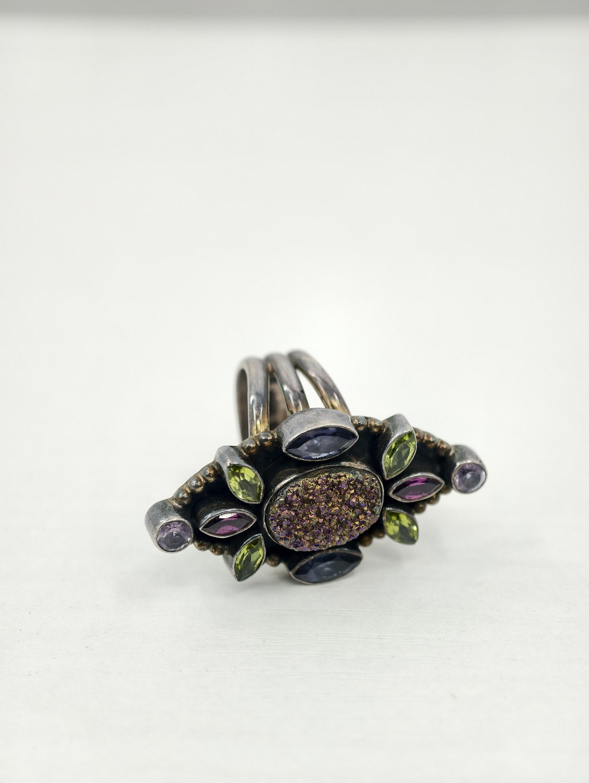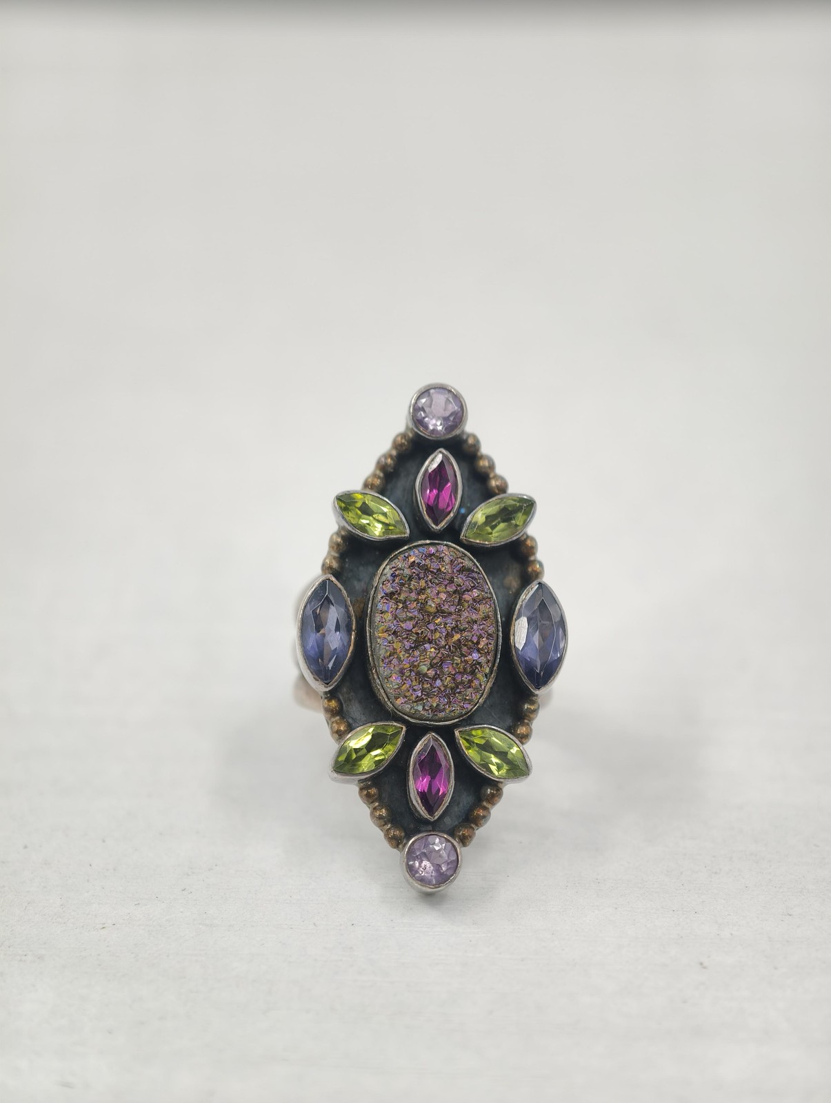 Sterling Silver 925 Multicolor Druzy Gemstone Cocktail Ring Size 8 15g Statement
