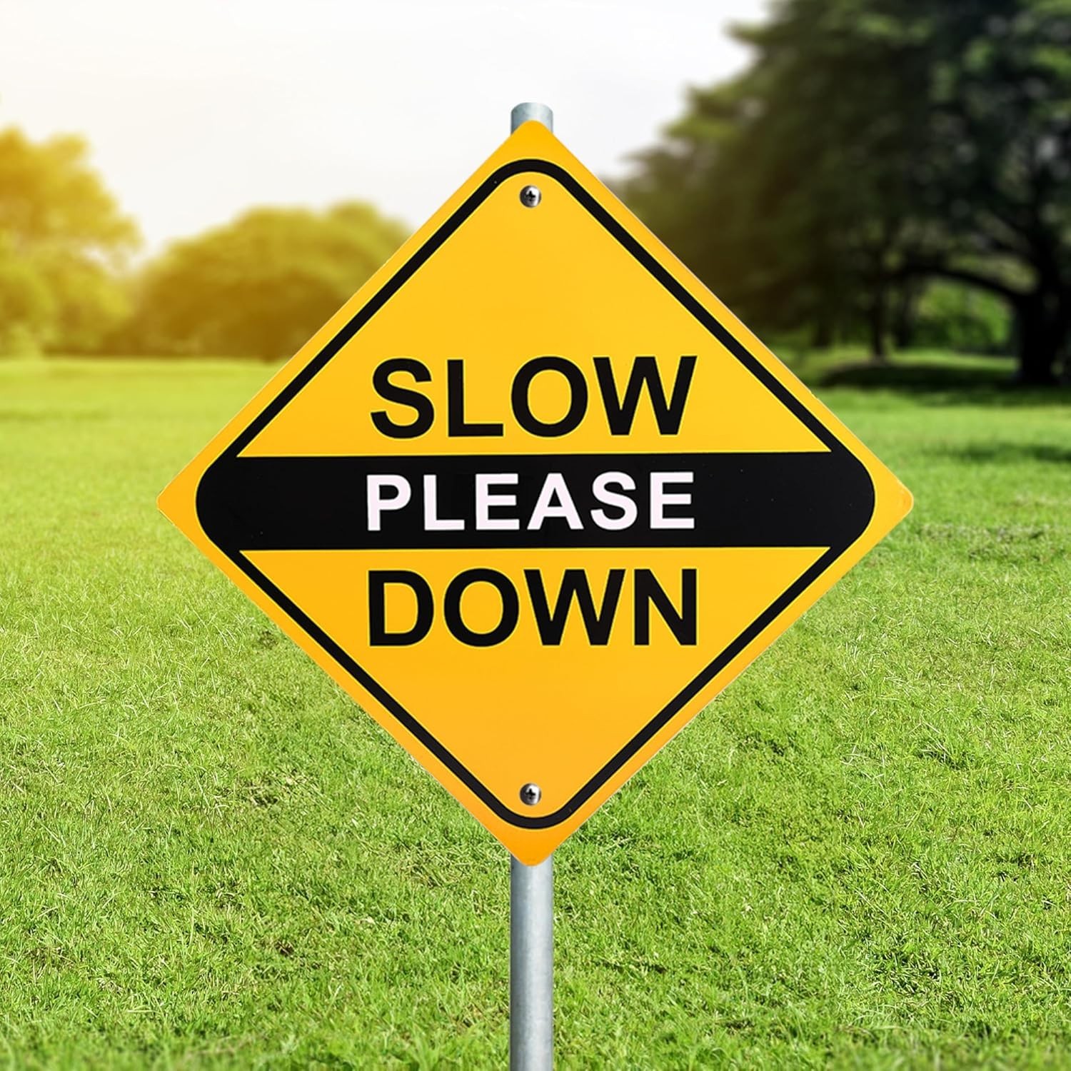 Cautionary Aluminum Slow Down Sign - Highly Visible 12x12 Reflective Design