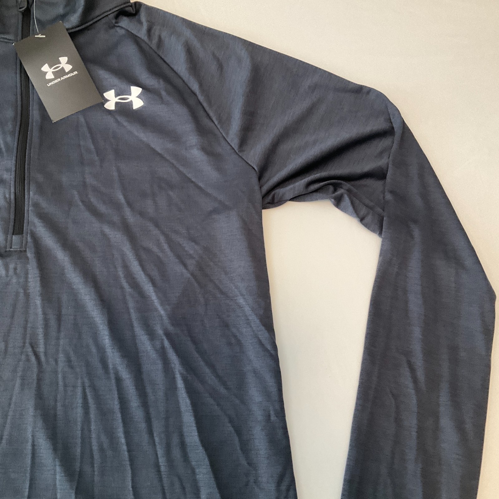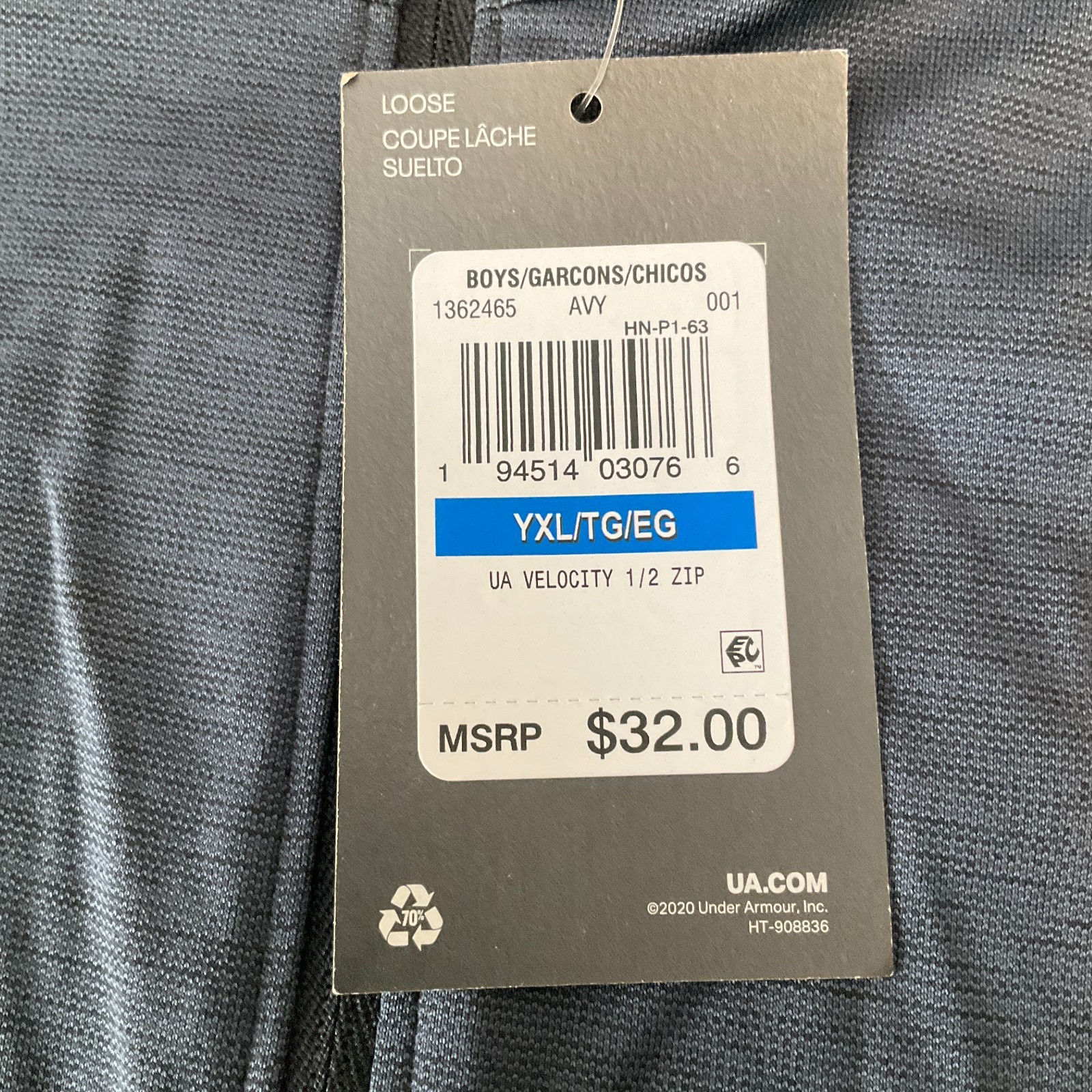 как выглядит Under Armour Long Sleeve Jacket Boys Size YXL Navy Velocity 1/2 Zip Stretch фото