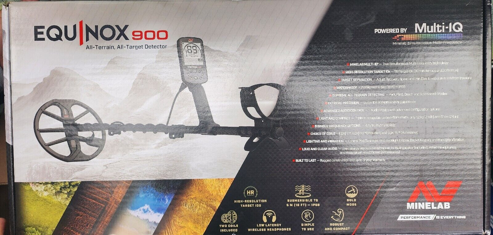 Minelab Equinox 900 Multi-IQ Metal Detector with 2 coils and Wireless Headphones
