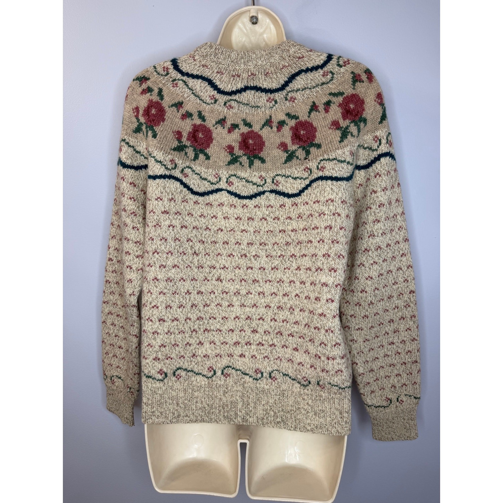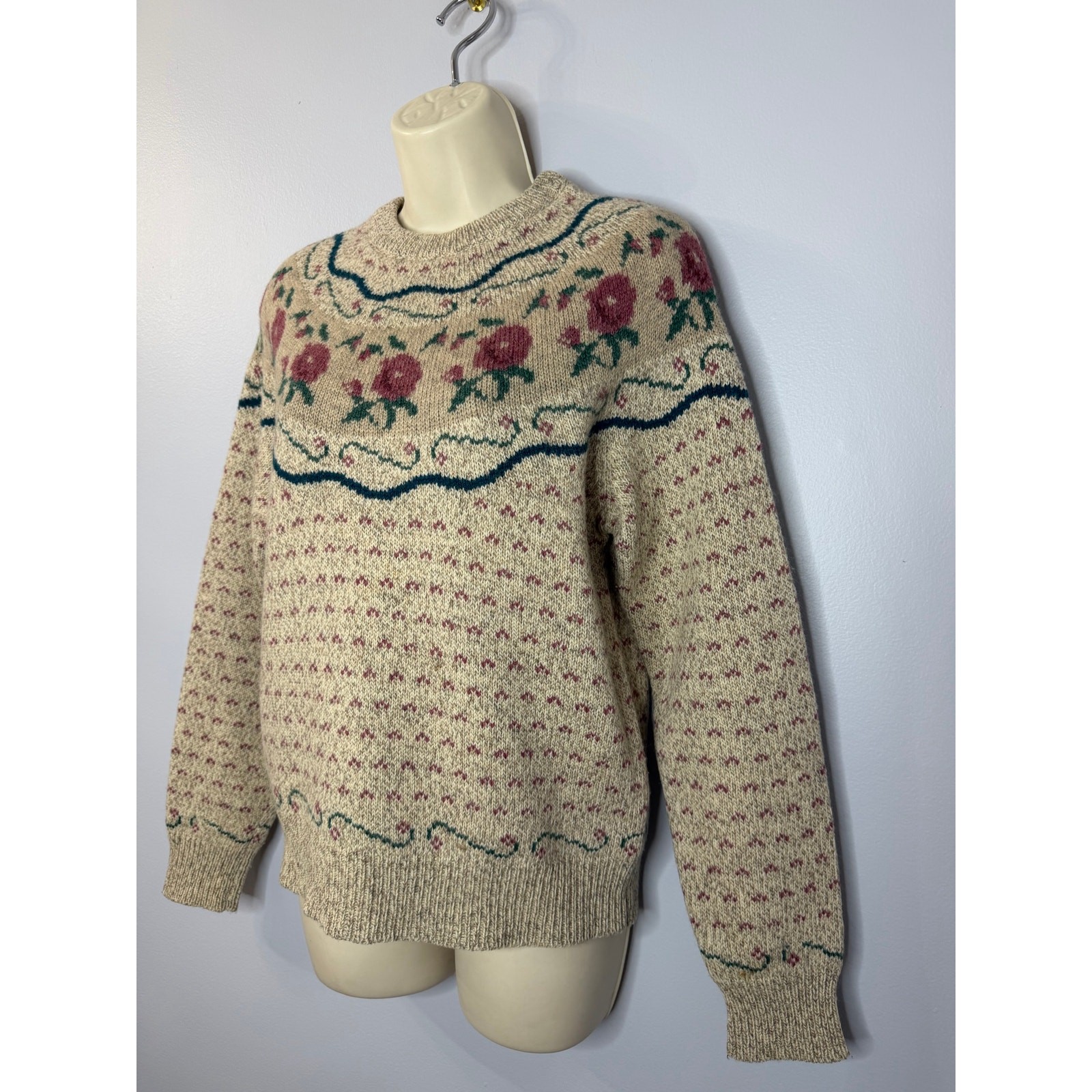 Eddie Bauer VGT Fair Isle Women Sweater Cream Floral Wool-Blend Cottagecore M