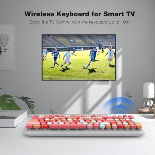 Wireless Bluetooth Keyboard for Laptop Android, Connect 3 Devices, Retro Round