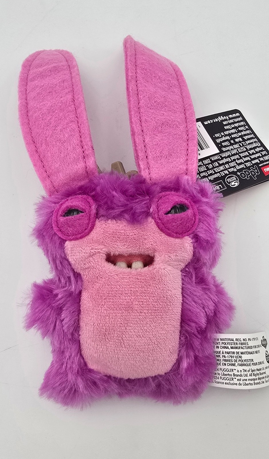 NEW Fuggler Funny Ugly Monster Keychain Fuzzy Keyring Purple Bunny Ears. Teeth