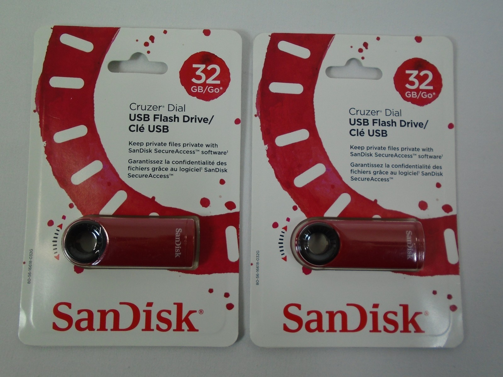 2 SanDisk 32 GB Cruzer Dial USB Flash Drive New Factory Sealed 80-56-16618-032G
