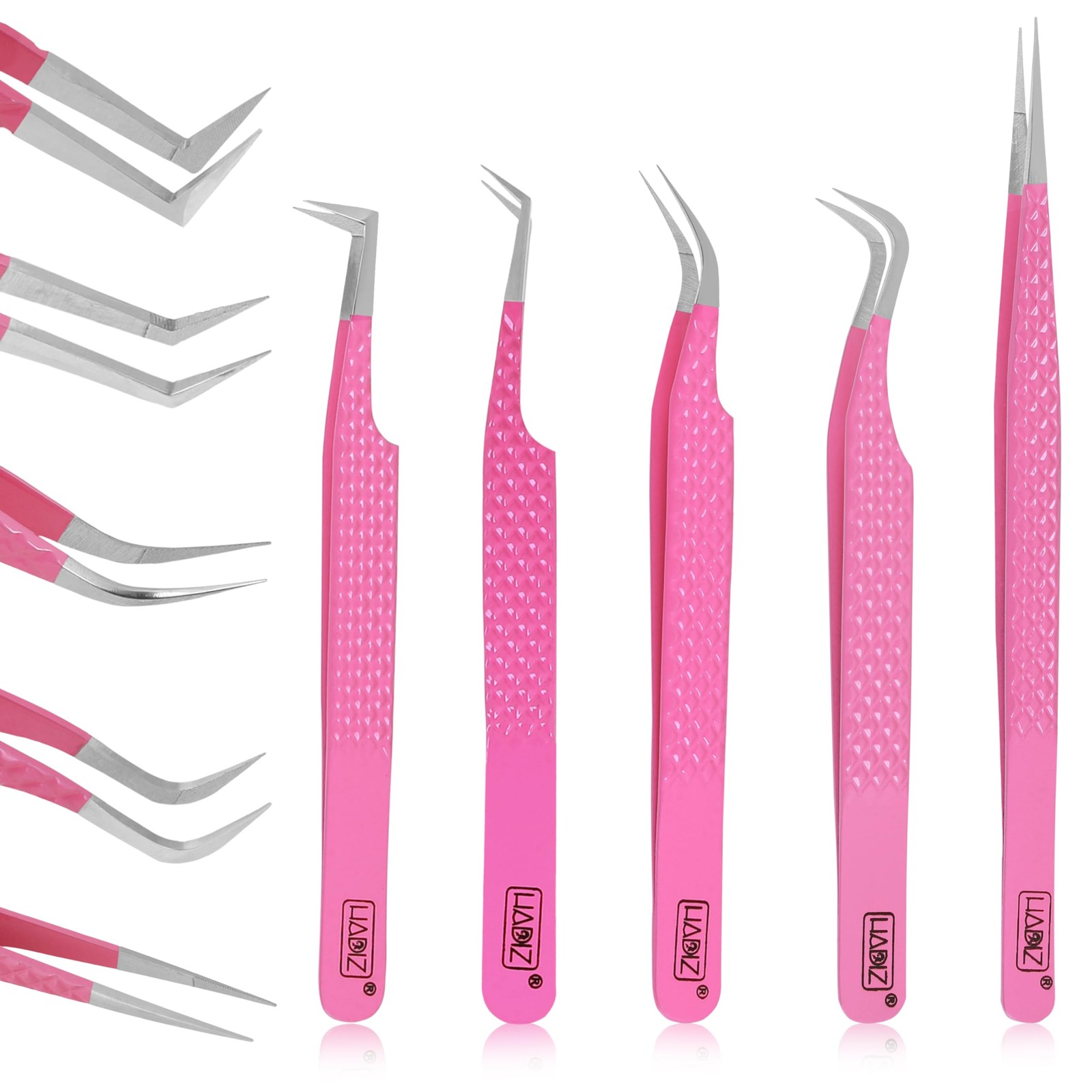 Fiber Tip Eyelash Extension Tweezers Set of 5 - Japanese Steel Quality