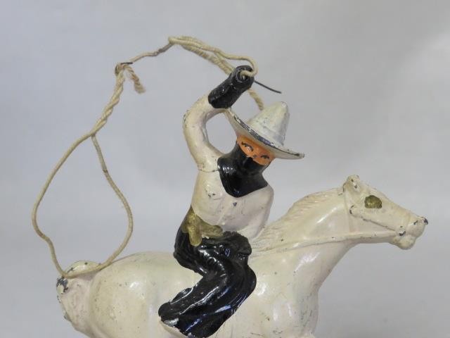 1930's Manoil Barclay : Masked Cowboy Mounted White Horse w/Lasso lead figure