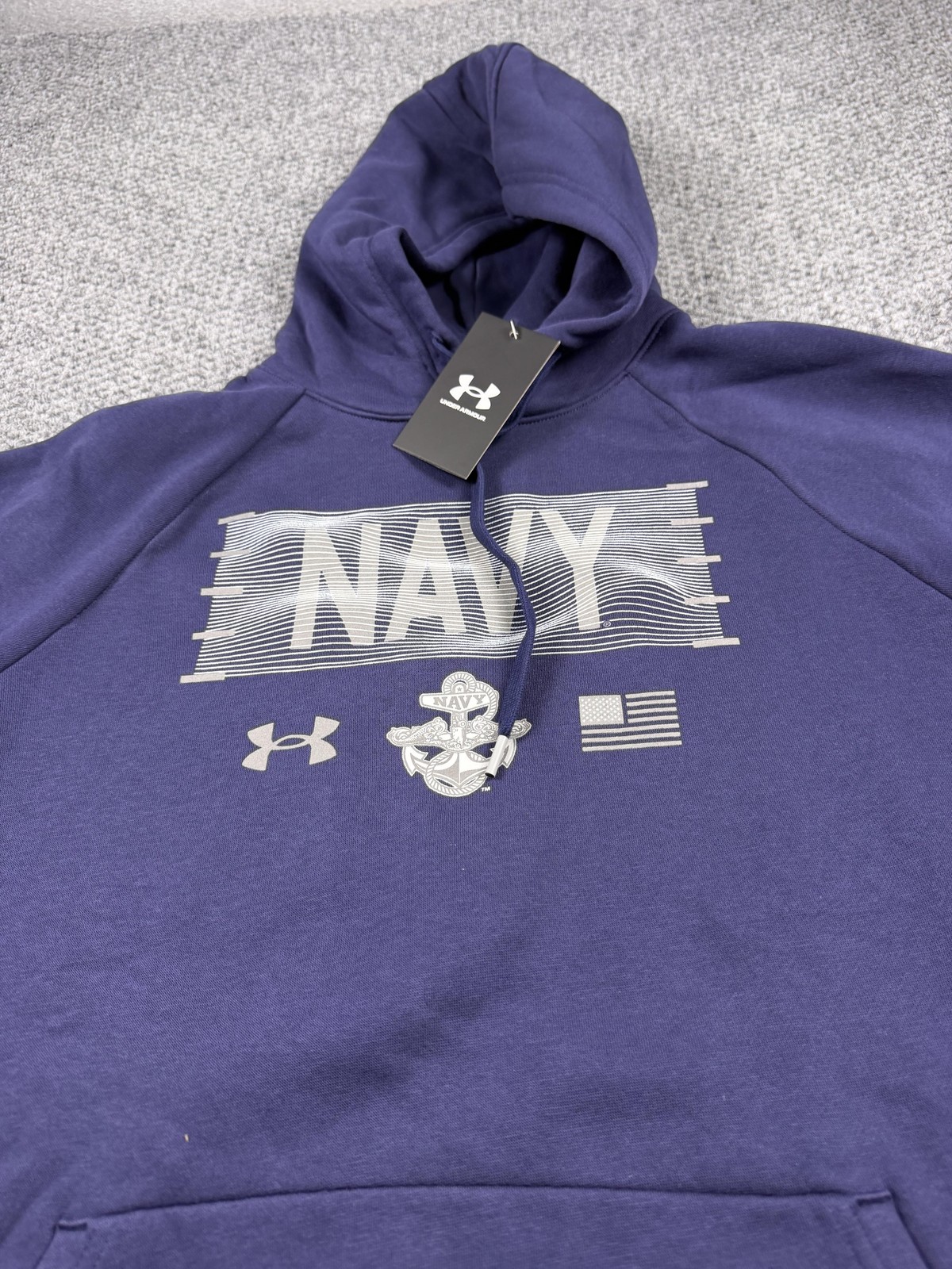 как выглядит Under Armour Hoodie Mens Medium Blue Pullover Fleece Navy USA Graphic Sweatshirt фото