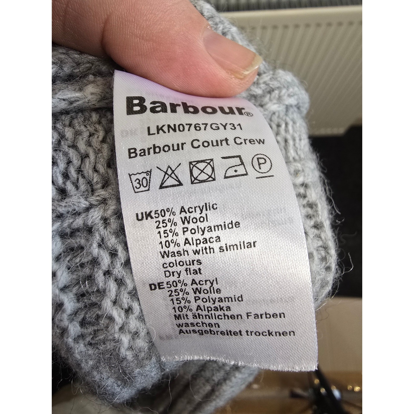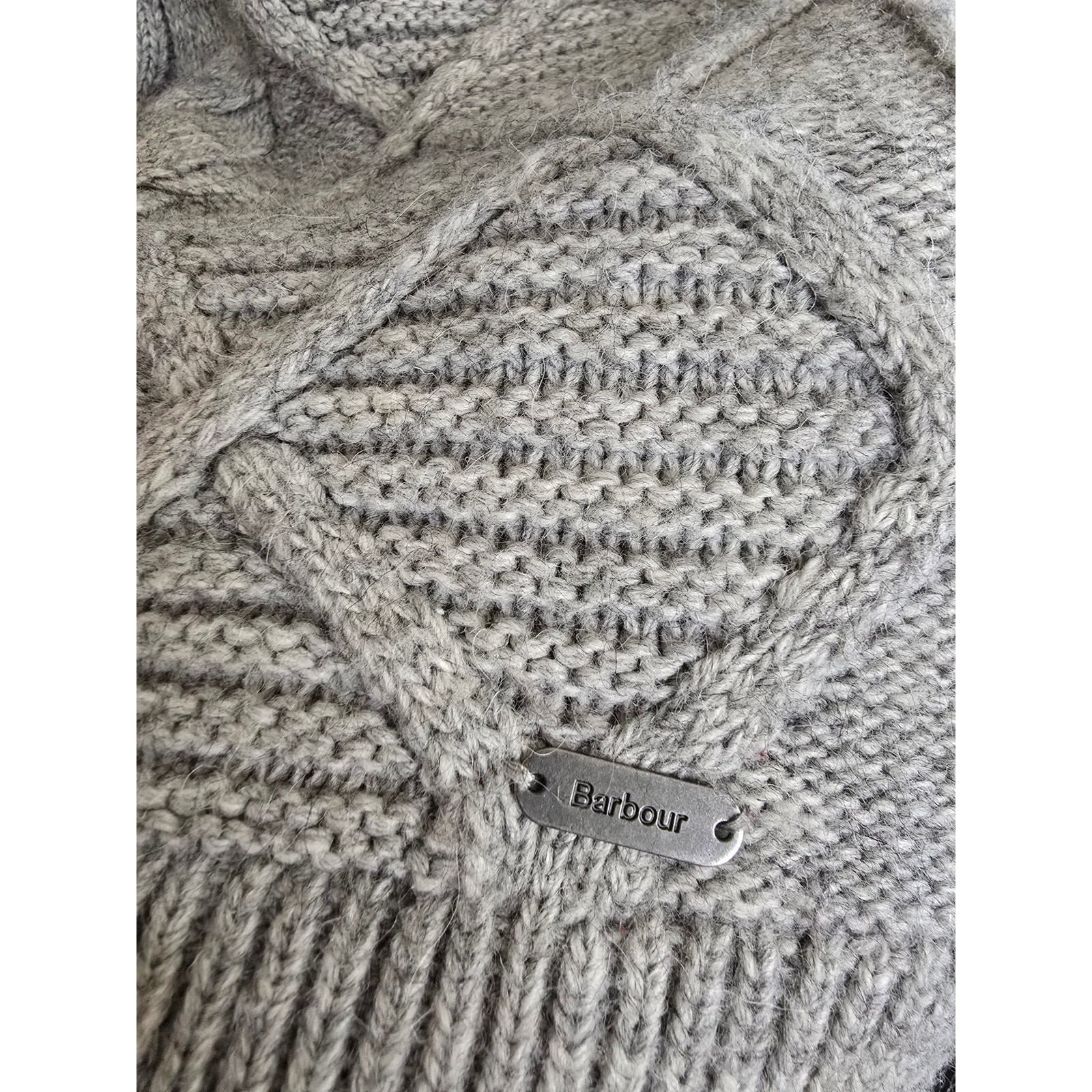 как выглядит Barbour Court Crew Grey Cable Knit Wool Alpaca Blend Sweater Size UK 10 фото