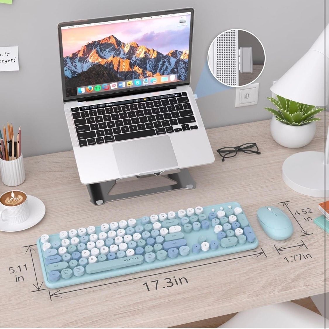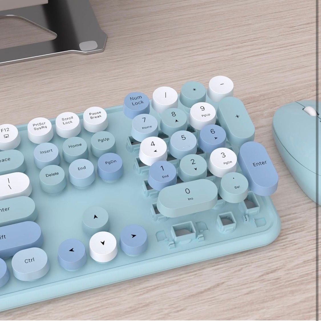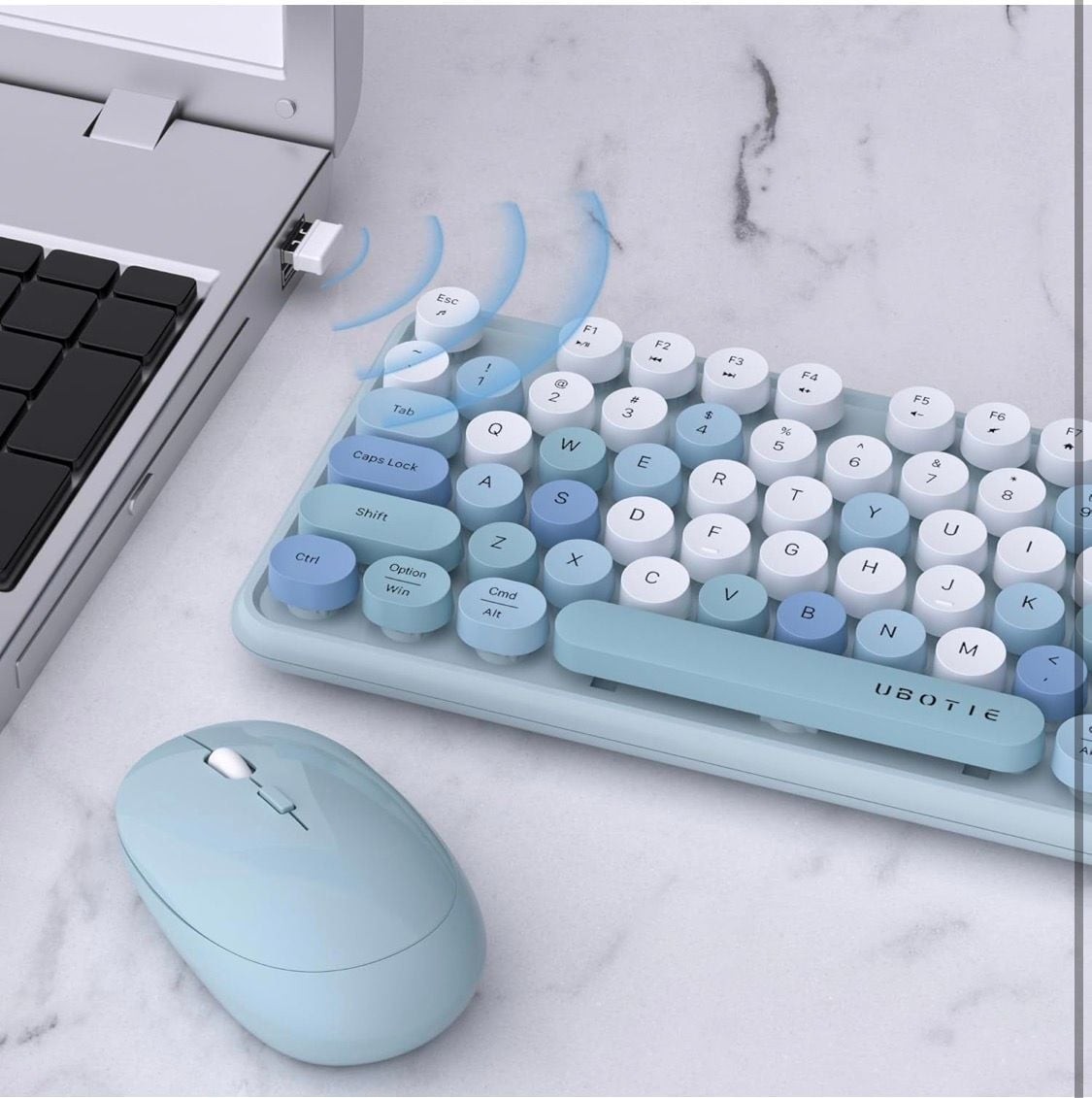 UBOTIE Colorful Wireless Retro Typewriter Keyboard and Mouse Combo - Blue Gradat