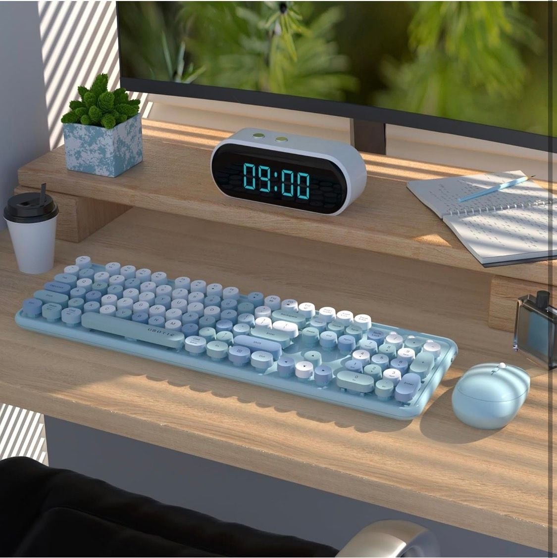 как выглядит UBOTIE Colorful Wireless Retro Typewriter Keyboard and Mouse Combo - Blue Gradat фото