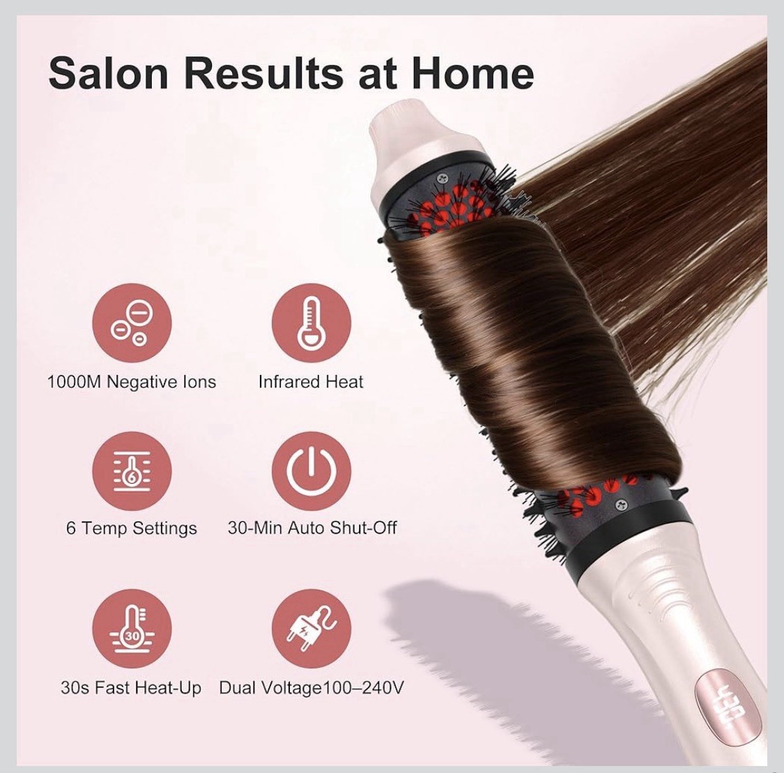 New Infrared Thermal Brush 1.7 , 2-in-1 Curling Straightening 6 Heat Settings