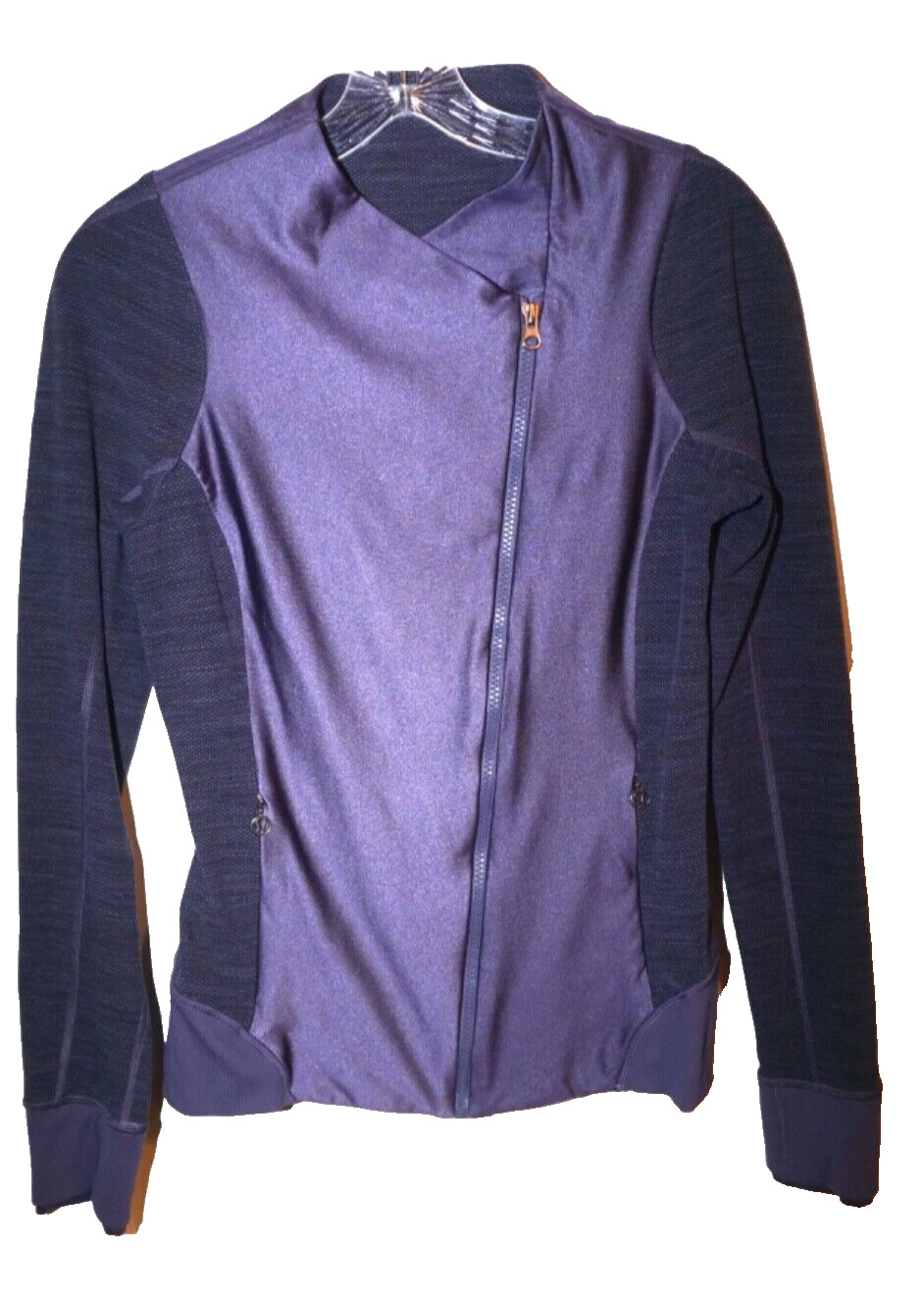 как выглядит Lululemon Emerge Renewed Zip Jacket Nightfall Purple Jacquard Stretch sz 8 фото